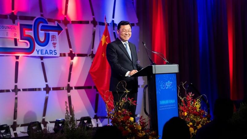 Chinese Ambassador to the United States Xie Feng addresses the jubilee gala marking the 50th anniversary of the US-China Business Council in Washington, DC, the United States, Dec 14, 2023. (PHOTO / XINHUA)