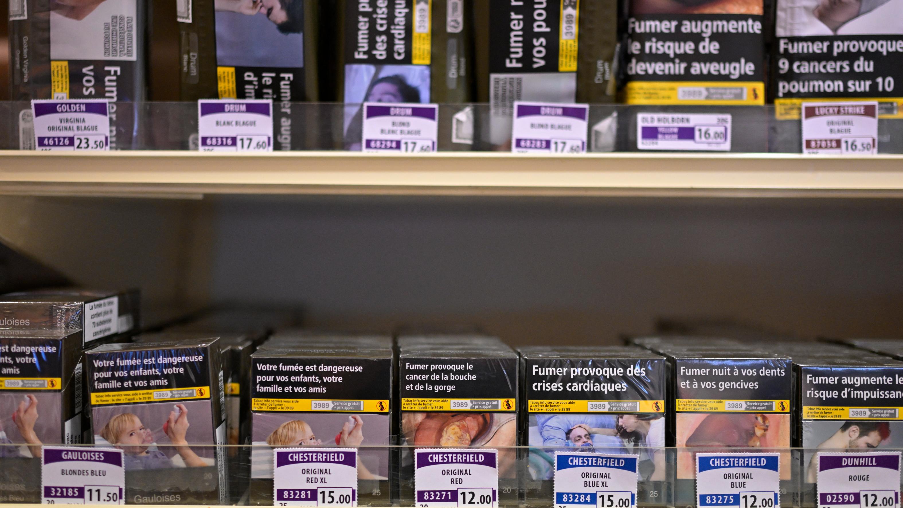 Cigarette packets are displayed in a tobacconist's shop in Hede-Bazouges, western France on Jan 2, 2024. (PHOTO / AFP)