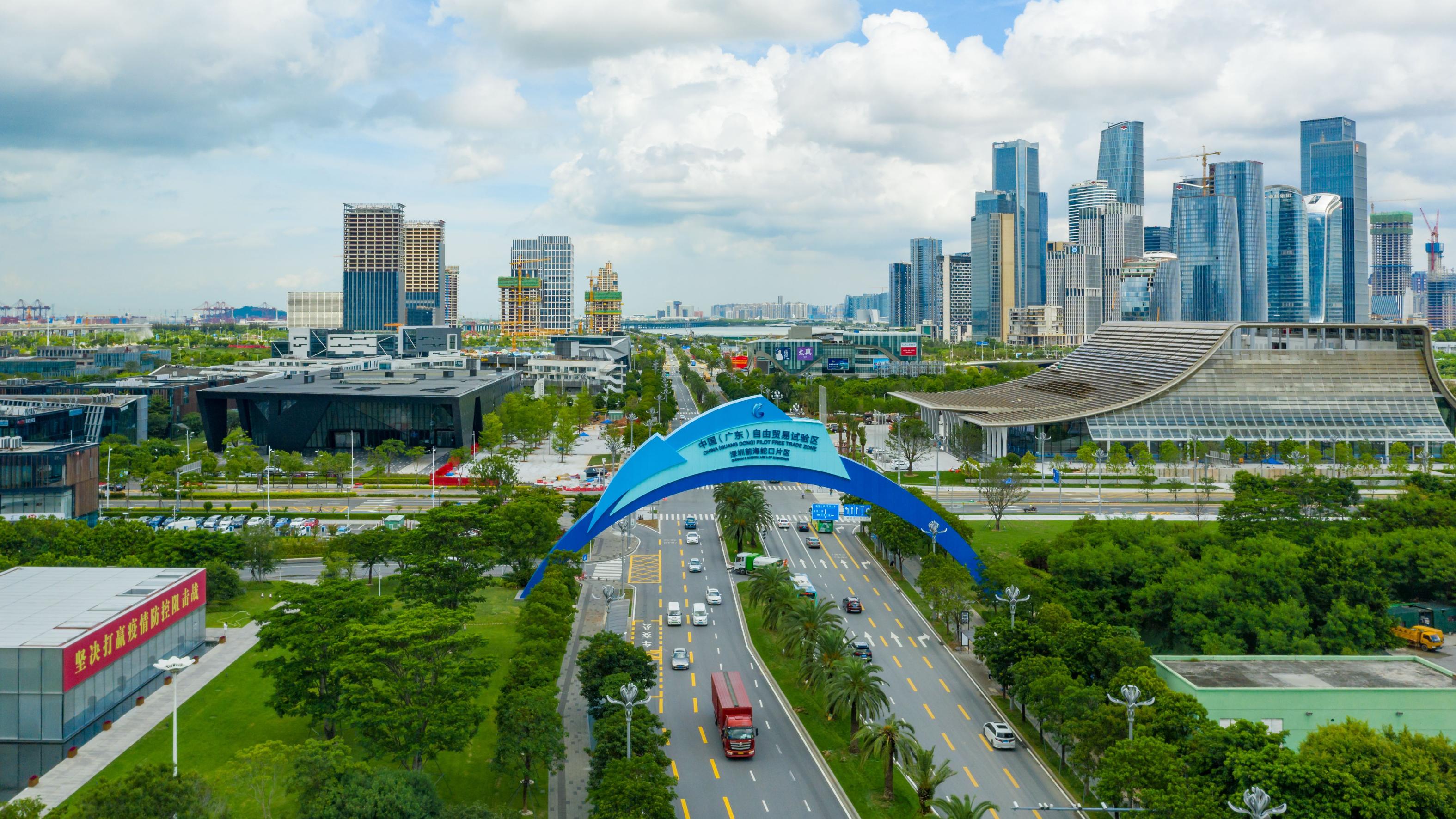 This undated file photo shows an aerial view of the Qianhai free trade zone in Shenzhen, Guangdong province. (LU LI / CHINA DAILY)