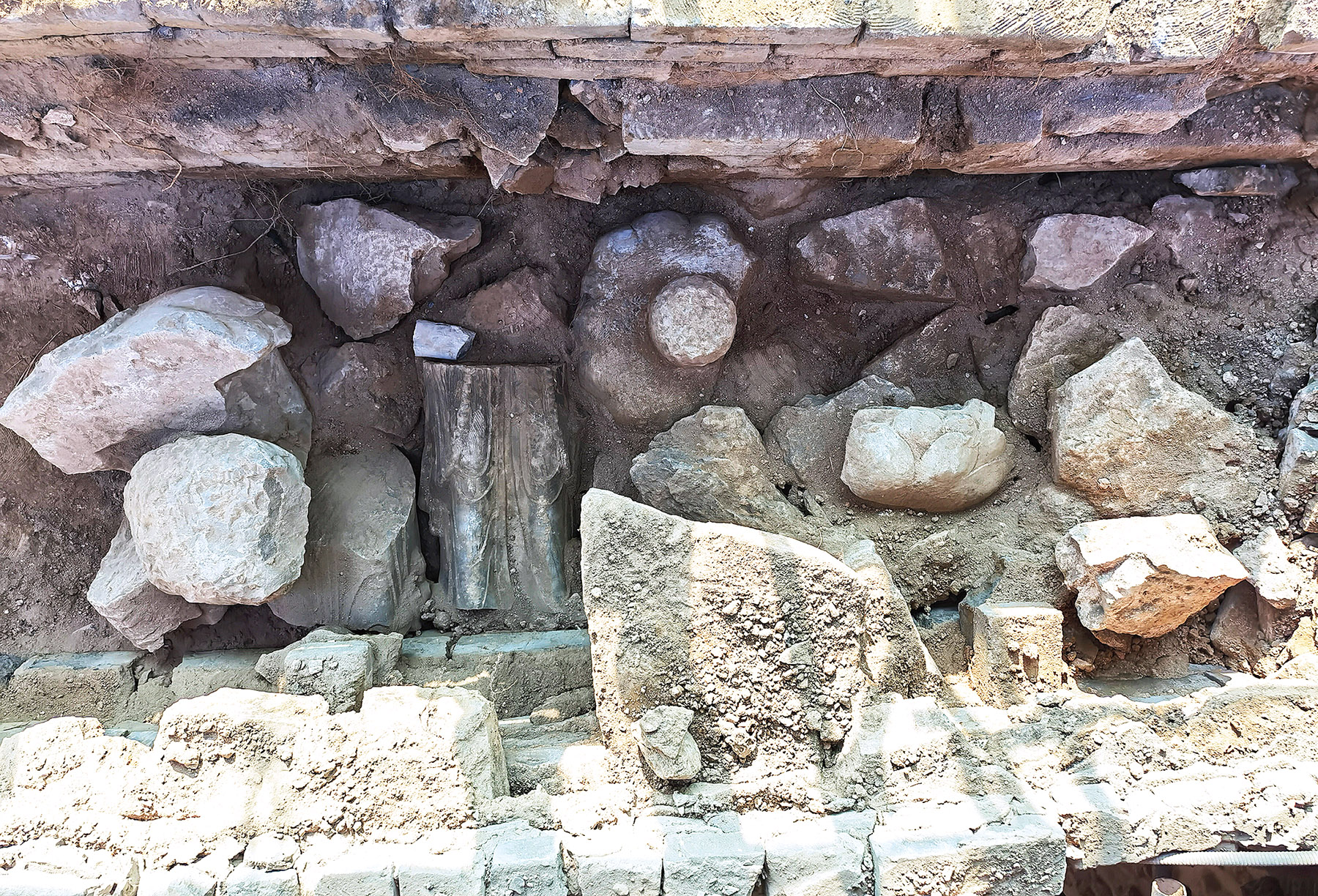Stone carvings, other objects uncovered within a wall at Longmen Grottoes during renovation work