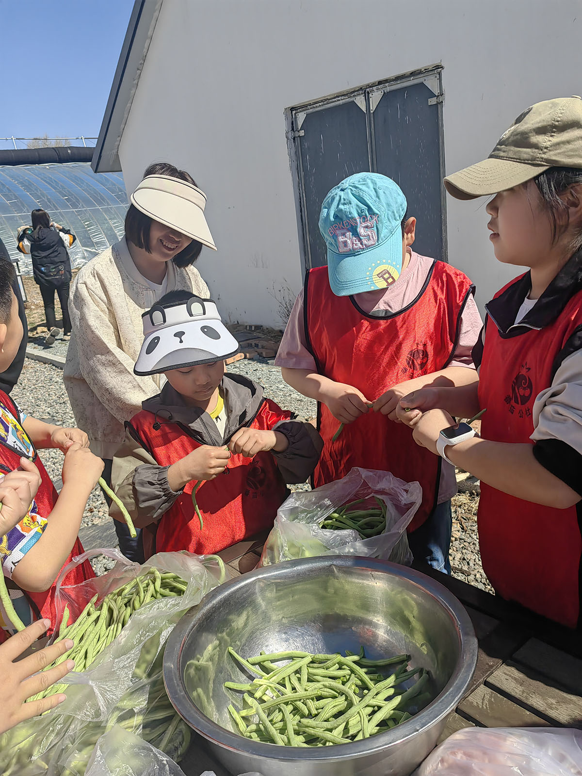 "There's so much fun and learning in our village, from the pastures to the grasslands, where students can pull cabbage, dig celery, pick corn, and shell sunflower seeds," Qi says.