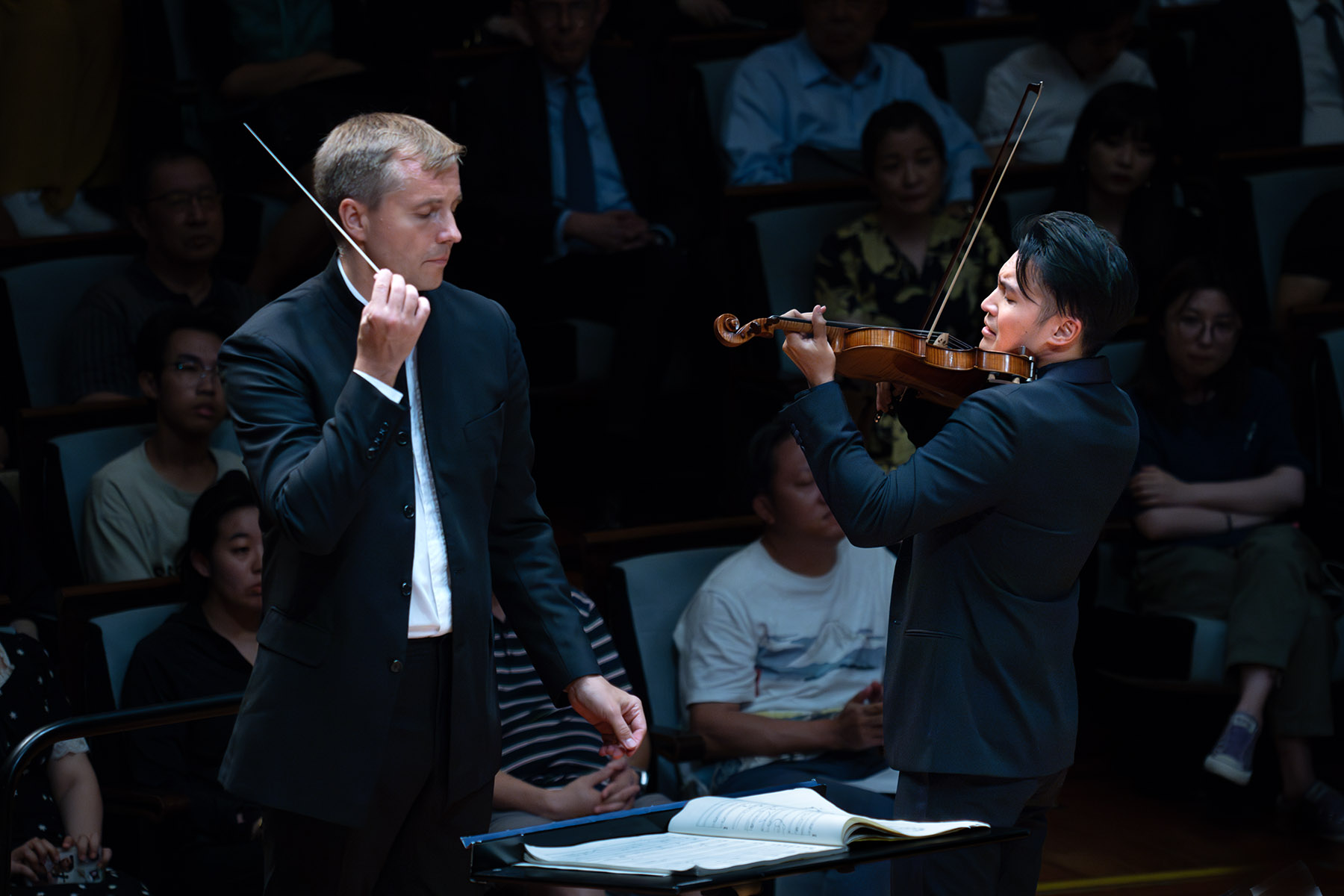 The Royal Philharmonic Orchestra's violinist Ray Chen and conductor Vasily Petrenko perform at the National Centre for the Performing Arts in Beijing on Aug 8, 2024. (PROVIDED TO CHINA DAILY)