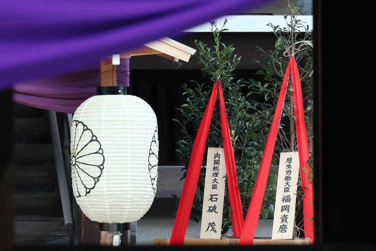 Ishiba had sent a ceremonial tree, called "masakaki," on the first day of the three-day ceremony at the shrine located in central Tokyo's Chiyoda district.