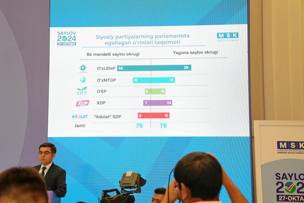 According to the commission, the Liberal Democratic Party of Uzbekistan gained the majority of seats in the elections to the Legislative Chamber of the Oliy Majlis, the lower house of the parliament.