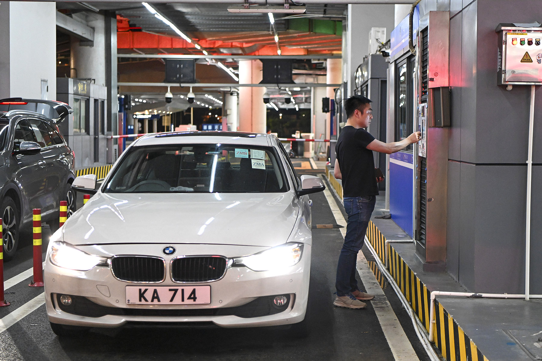 The driver of a single-plate car passes inspections at the Hong Kong-Zhuhai-Macao Bridge in July 2023. The Northbound Travel for Macao Vehicles program was launched last year, allowing private cars from Macao with only local license plates to enter Guangdong province via the Zhuhai Port of the Hong Kong-Zhuhai-Macao Bridge. (CHEN JIMIN / CHINA NEWS SERVICE)