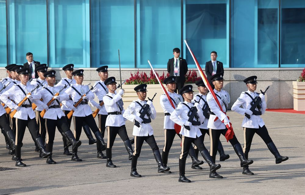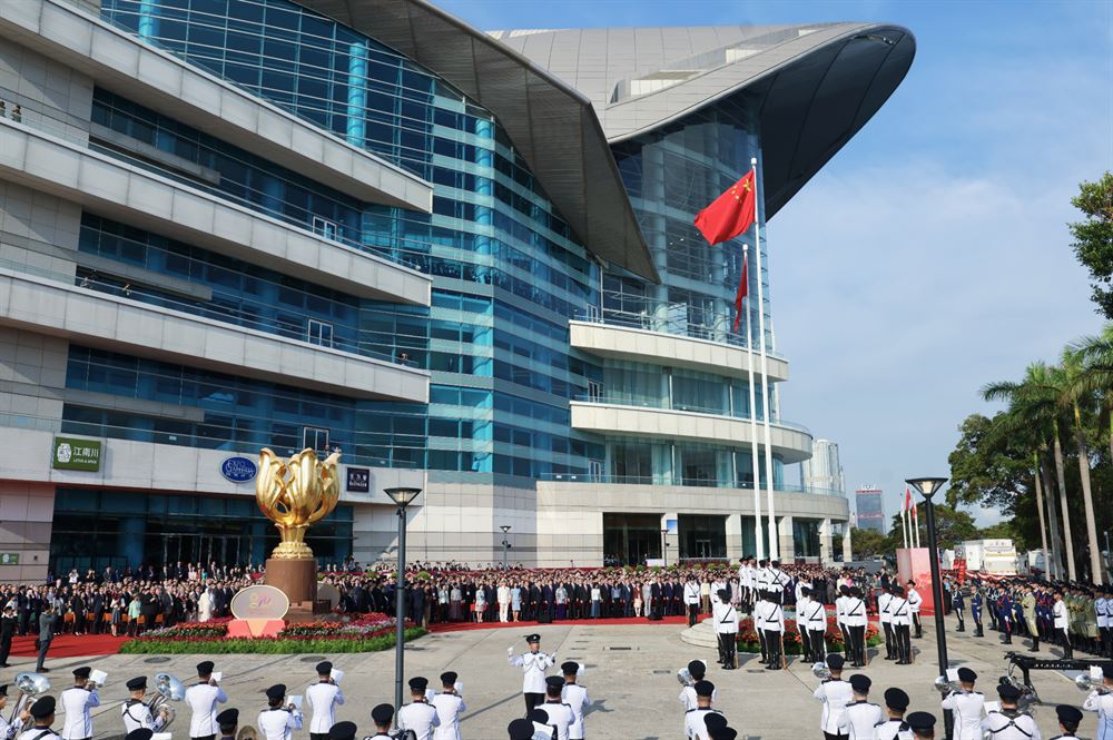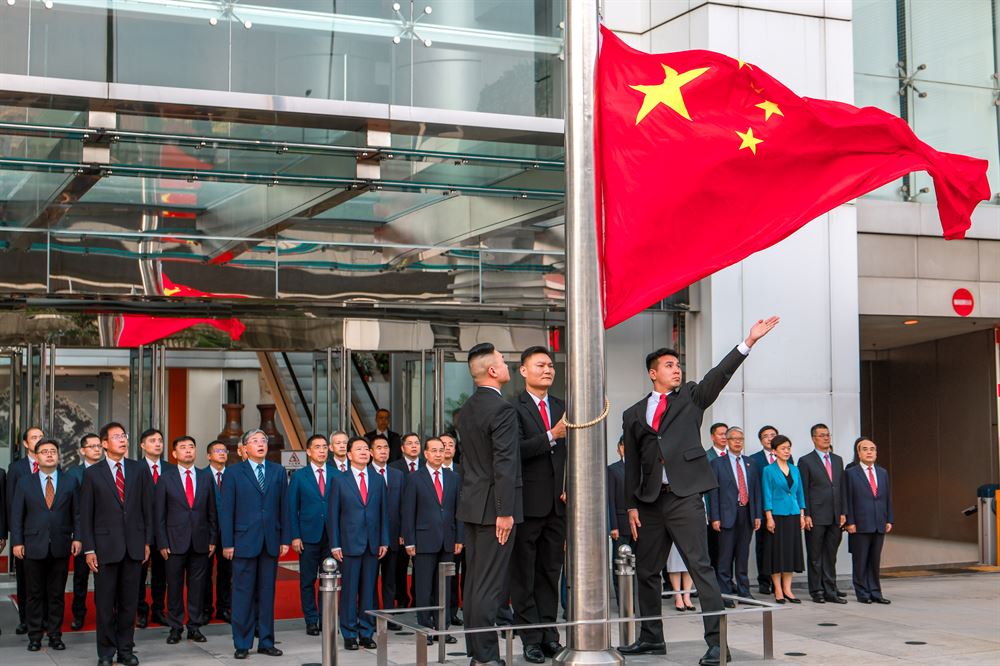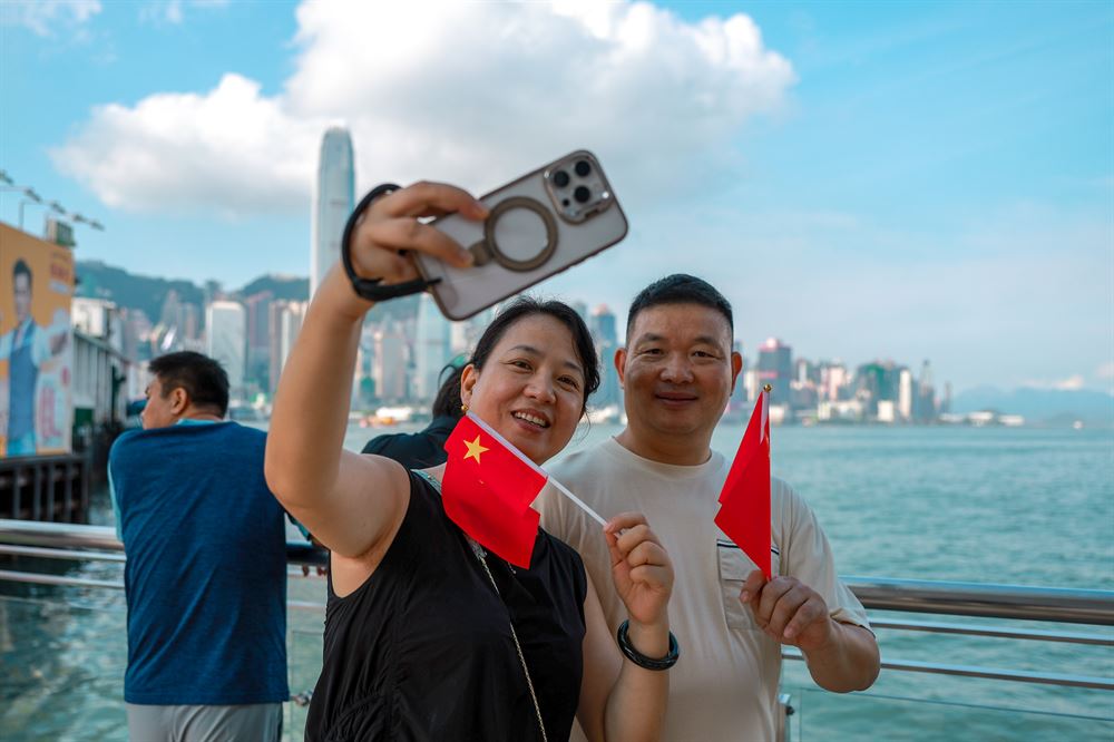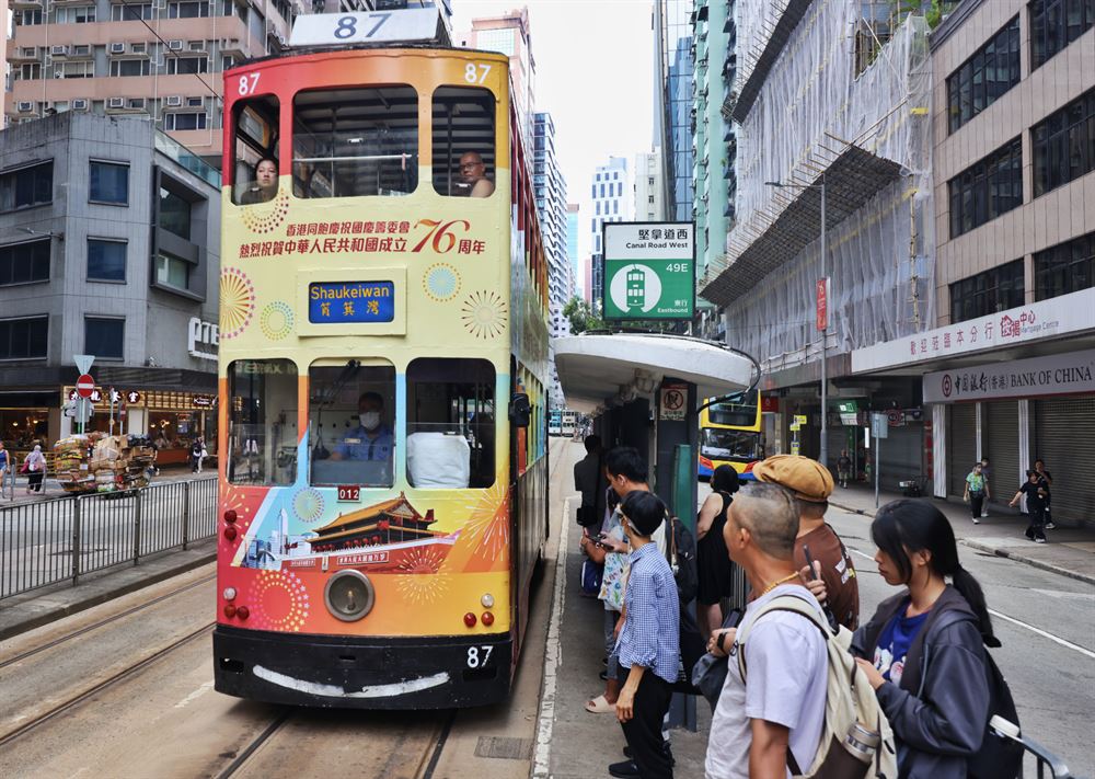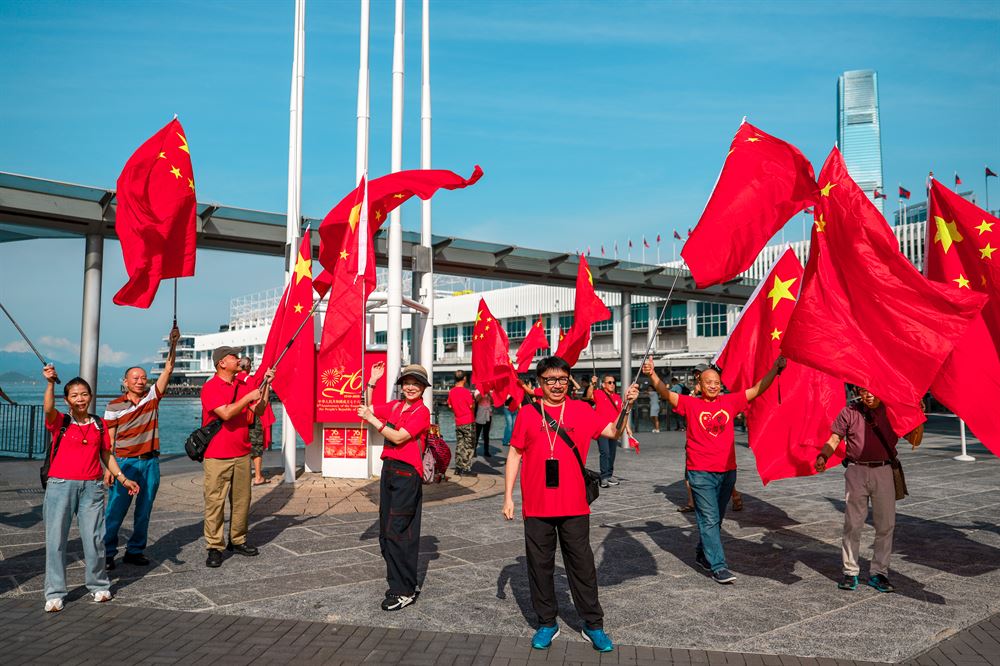 The Chinese national flag is raised in celebration of the 76th anniversary of the founding of the People's Republic of China at the Liaison Office of the Central People’s Government in the Hong Kong Special Administrative Region, in Hong Kong on Oct 1, 2025. (ANDY CHONG / CHINA DAILY)Zhou Ji (center), director of the Liaison Office of the Central People’s Government in the Hong Kong Special Administrative Region, waves to reporters after a flag-raising ceremony to mark of the 76th anniversary of the founding of the People's Republic of China at the Liaison Office of the Central People’s Government in the HKSAR, in Hong Kong on Oct 1, 2025. (ANDY CHONG / CHINA DAILY)Officials and guests make a toast during a National Day reception to celebrate the 76th anniversary of the founding of the People's Republic of China, in Hong Kong on Oct 1, 2025. (PARKER ZHENG / CHINA DAILY)HKSAR Chief Executive John Lee Ka-chiu delivers a speech during a National Day reception to celebrate the 76th anniversary of the founding of the People's Republic of China, in Hong Kong on Oct 1, 2025. (PARKER ZHENG / CHINA DAILY)Young students and artists perform during a National Day reception to celebrate the 76th anniversary of the founding of the People's Republic of China, in Hong Kong on Oct 1, 2025. (PARKER ZHENG / CHINA DAILY)A fire boat sprays water in front of the Hong Kong Convention and Exhibition Centre to celebrate the 76th anniversary of the founding of the People's Republic of China, in Hong Kong on Oct 1, 2025. (ANDY CHONG / CHINA DAILY)A girl smiles while posing with the Chinese national flags to celebrate the 76th anniversary of the founding of the People's Republic of China, in Hong Kong on Oct 1, 2025. (ANDY CHONG / CHINA DAILY)People walk through entry gates for a free ferry ride to celebrate the 76th anniversary of the founding of the People's Republic of China, in Hong Kong on Oct 1, 2025. (ANDY CHONG / CHINA DAILY)A sign reading "Celebrating the 76th Anniversary of the Founding of the People's Republic of China - Free Tram Ride Day" is seen in a tram in Hong Kong, as the city offers free tram rides on Oct 1 to celebrate the 76th anniversary of the founding of the People's Republic of China. (PARKER ZHENG / CHINA DAILY)