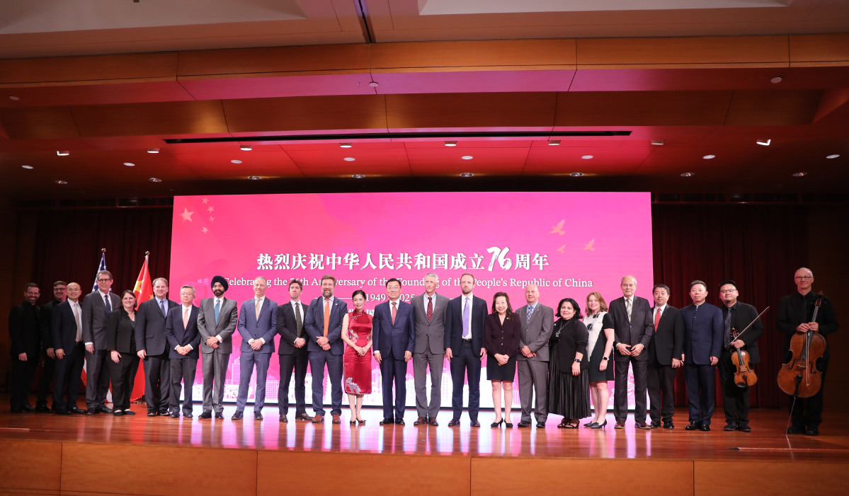 More than 700 guests attended the National Day reception at the Chinese Embassy. They included representatives from the US State Department, the White House National Security Council, the Department of Commerce and other departments, representatives from the governments of Washington DC and Maryland, World Bank President Ajay Banga, Illinois Congressman Jonathan Jackson and foreign ambassadors.