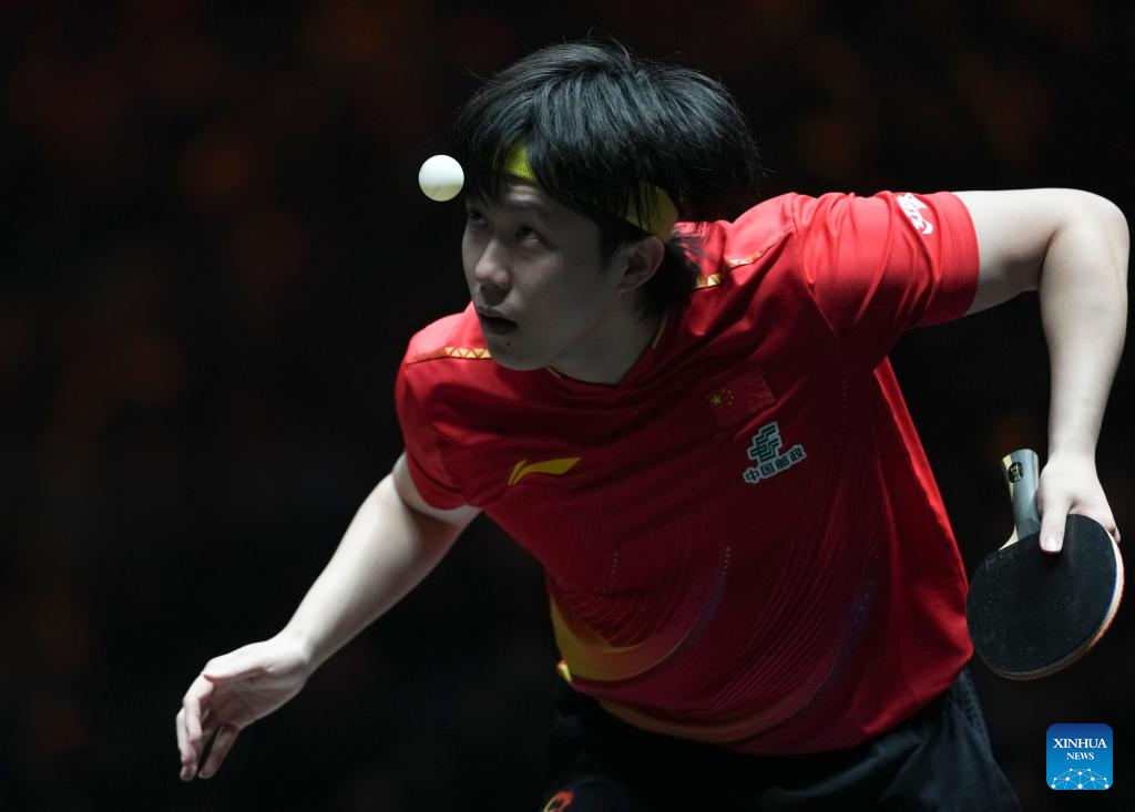 Wang was joined in the men's singles round of 16 by teammates Liang Jingkun and Chen Junsong. Liang rallied past Lin Gaoyuan 3-1 (8-11, 13-11, 11-9, 11-5) in an all-Chinese duel, while qualifier Chen continued his run with a five-game victory over France's Thibault Poret.