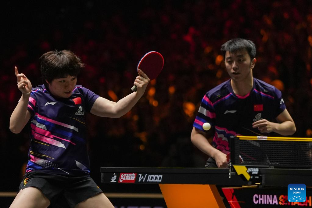 Chen Yuanyu/Kuai Man (left) of China compete during the mixed doubles quarterfinal match against Wang Chuqin/Sun Yingsha of China at 2025 World Table Tennis (WTT) China Smash in Beijing, China, Oct 1, 2025. (PHOTO / XINHUA)