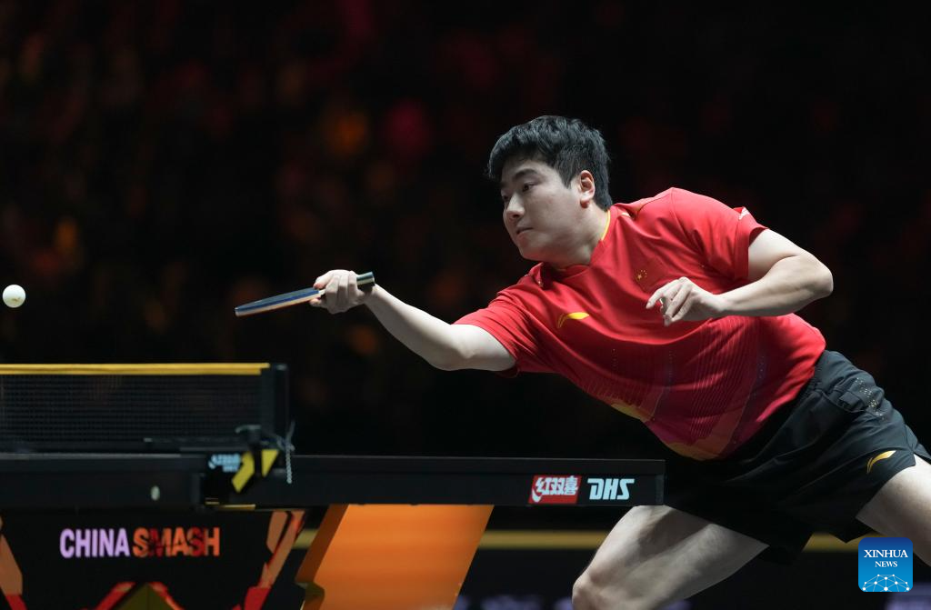 BEIJING - China's Wang Chuqin celebrated three victories at the World Table Tennis (WTT) China Smash on Wednesday, overcoming his biggest challenge in the men's singles second round.