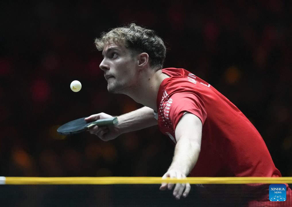 Milosz Redzimski of Poland serves during the men's singles round of 32 match against Wang Chuqin of China at 2025 World Table Tennis (WTT) China Smash in Beijing, China, Oct 1, 2025. (PHOTO / XINHUA)