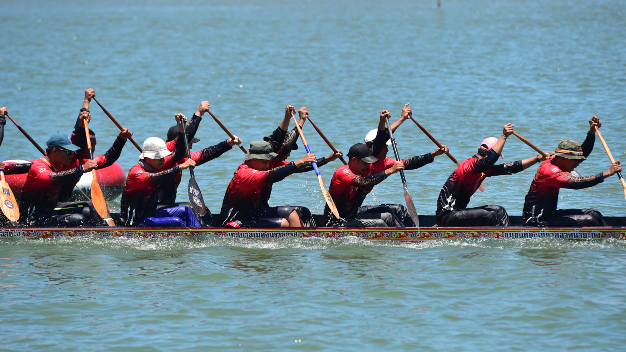 Participants compete in a dragon boat race during the annual four-day team rowing competition in Thailand's southern province of Narathiwat on Sept 20, 2025. (PHOTO / AFP)