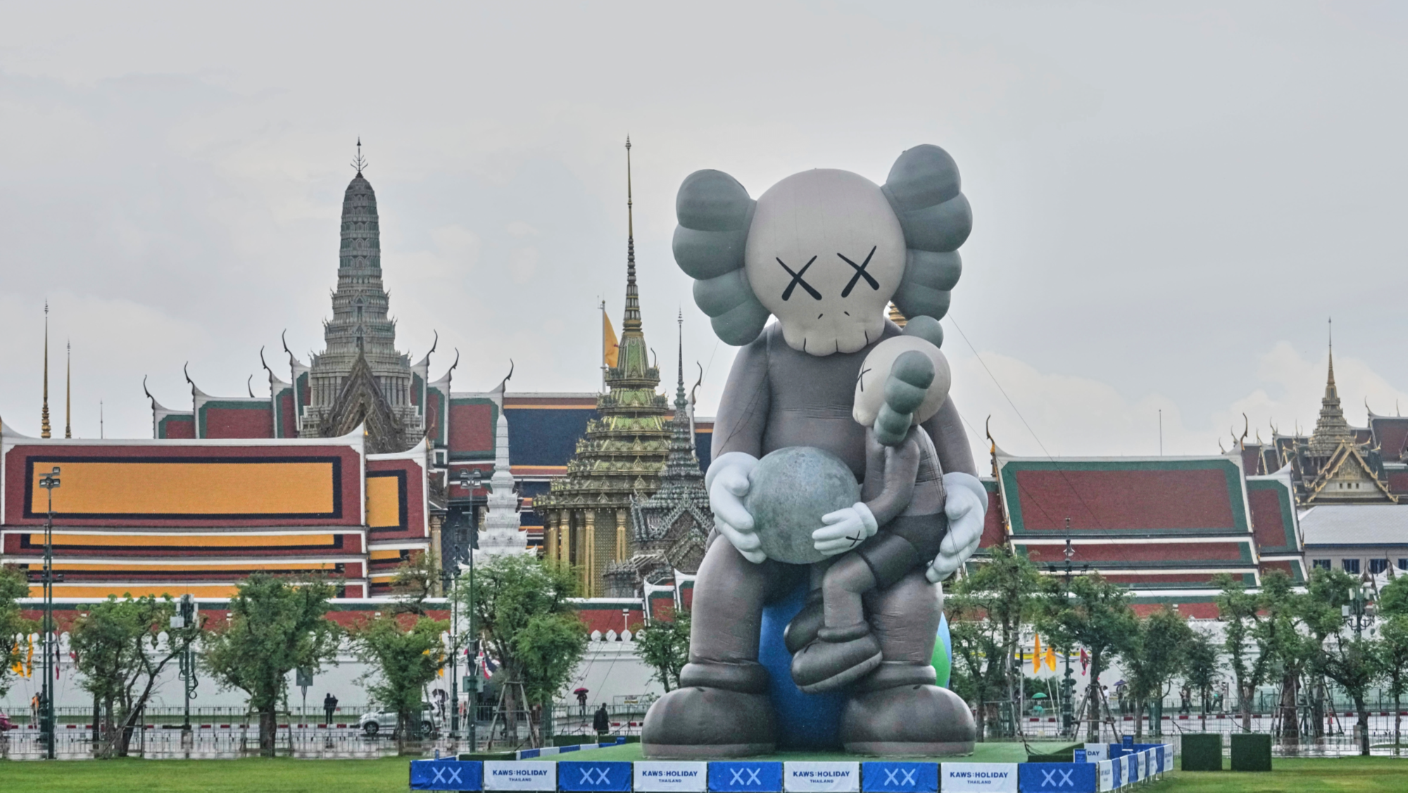 A sculpture of "KAWS" stands in front of grand palace as a part of a promotion of Thailand tourism in Bangkok, Thailand, May 13, 2025. (PHOTO / AP)