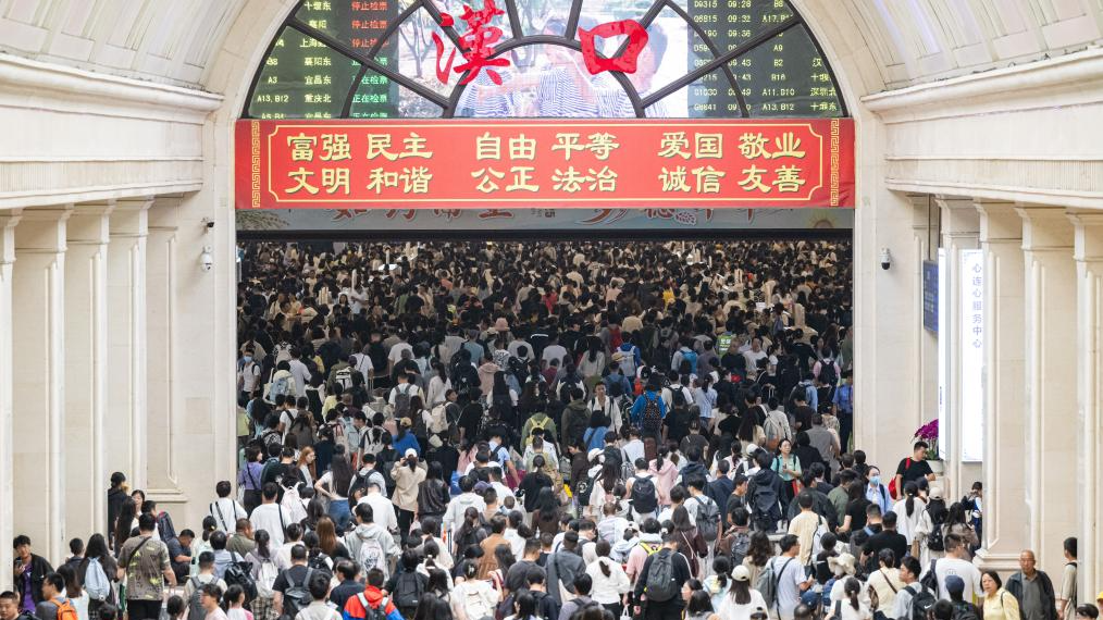 Passengers enter the Hankou Railway Station in Wuhan, Central China's Hubei province, on Oct 1, 2025. (PHOTO / XINHUA)