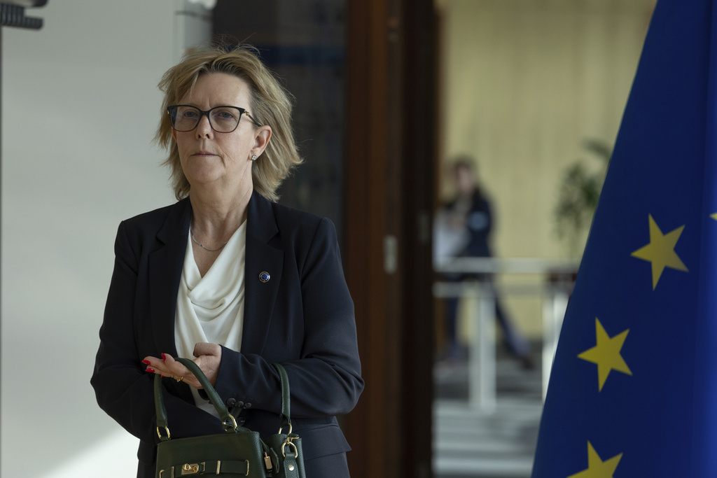 European Commissioner for Financial Stability, Financial Services and Capital Markets Union Maria Luís Albuquerque arrives for the weekly college of commissioners meeting at EU headquarters in Brussels on May 21, 2025. (PHOTO / AP)