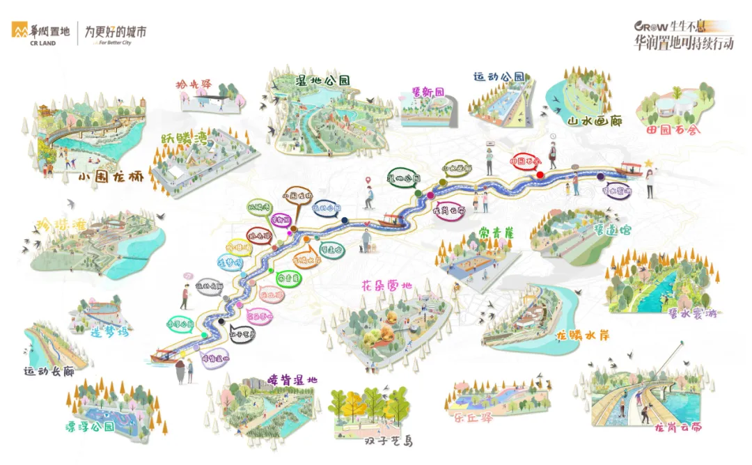 The guide map of the Longgang River Main Stream Greenway is shared on the WeChat public account of Shenzhen municipal government’s water supplies department. (深圳水务@WECHAT)