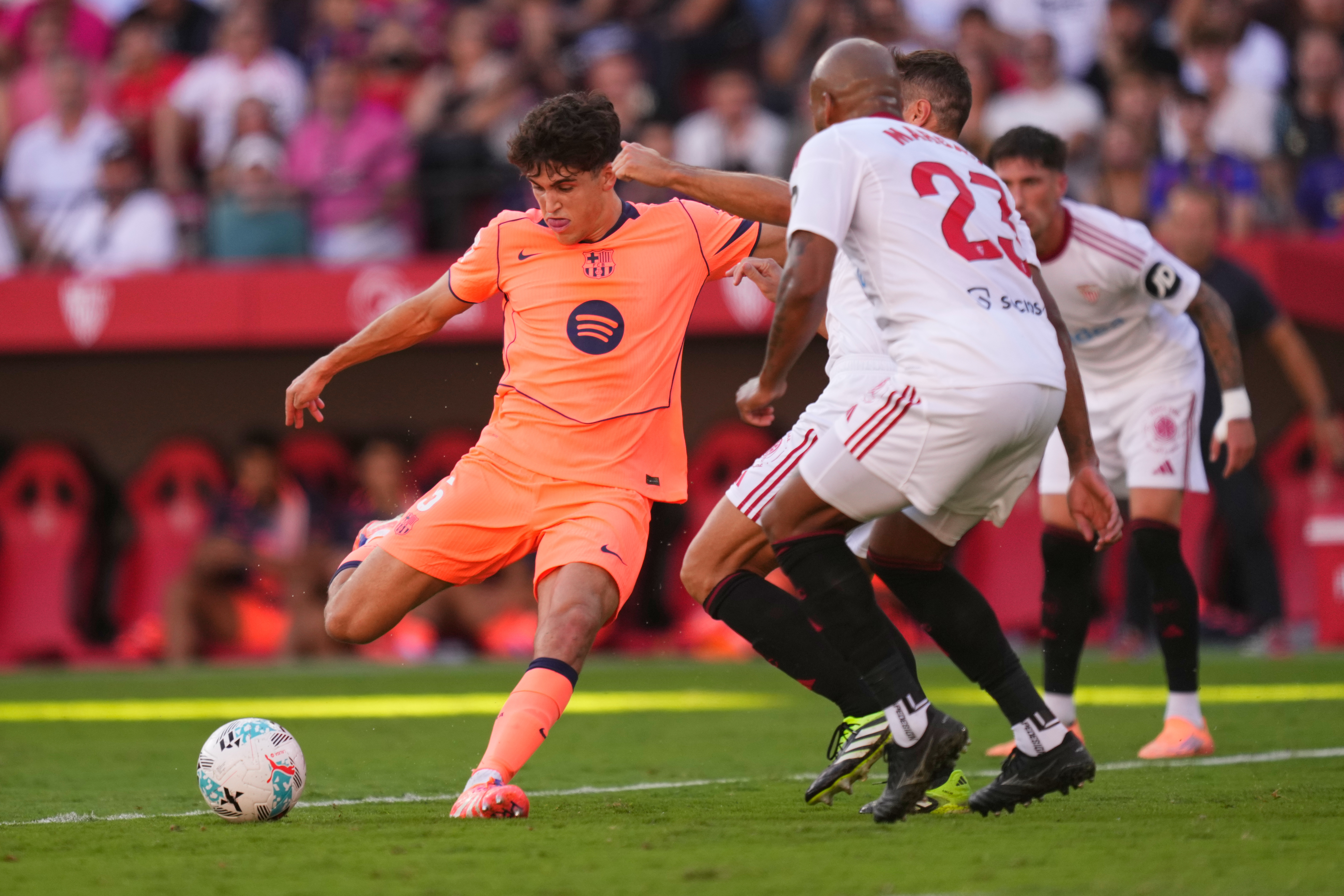 Without the injured trio of Lamine Yamal, Raphinha and Fermin Lopez, Barca was overrun by Sevilla in the first half.