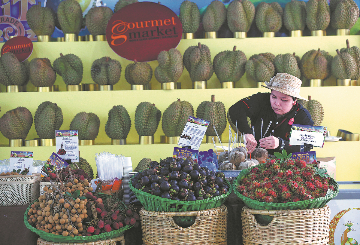 A vendor prepares fruit for sale at her stall at a fruit fair in Bangkok, Thailand, on May 5. The World Bank downgraded Thailand's GDP growth forecast for 2025 to 1.6 percent from 2.9 percent, marking the lowest growth prediction among ASEAN economies. (PHOTO / EPA-EFE)