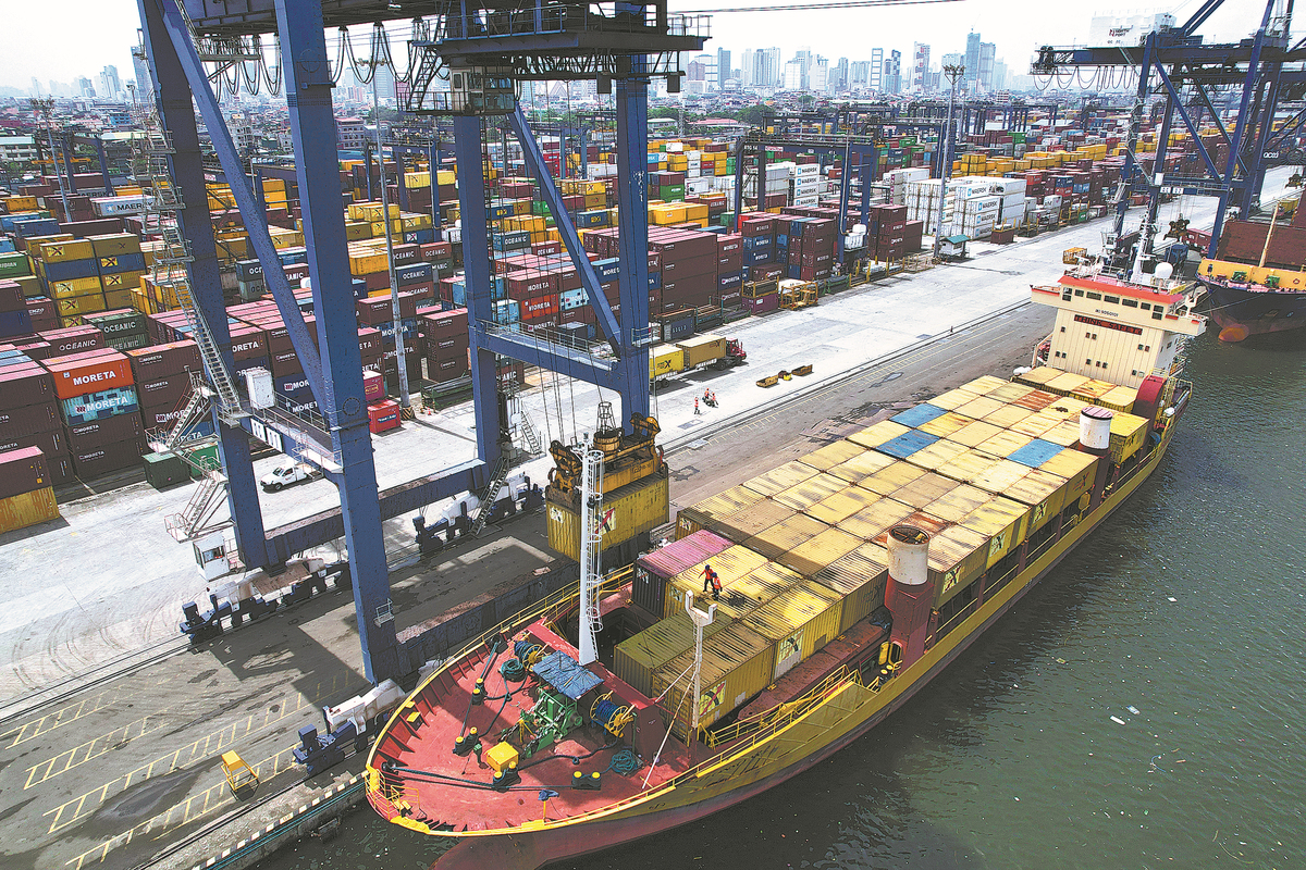 Port workers prepare to unload a ship carrying stacks of containers as it docks at the Manila North Harbour Port in the Philippines, on Aug 7.From that day, US imports from Indonesia, Malaysia, Cambodia, the Philippines and Thailand faced 19 percent tariff rates. (PHOTO / AP)