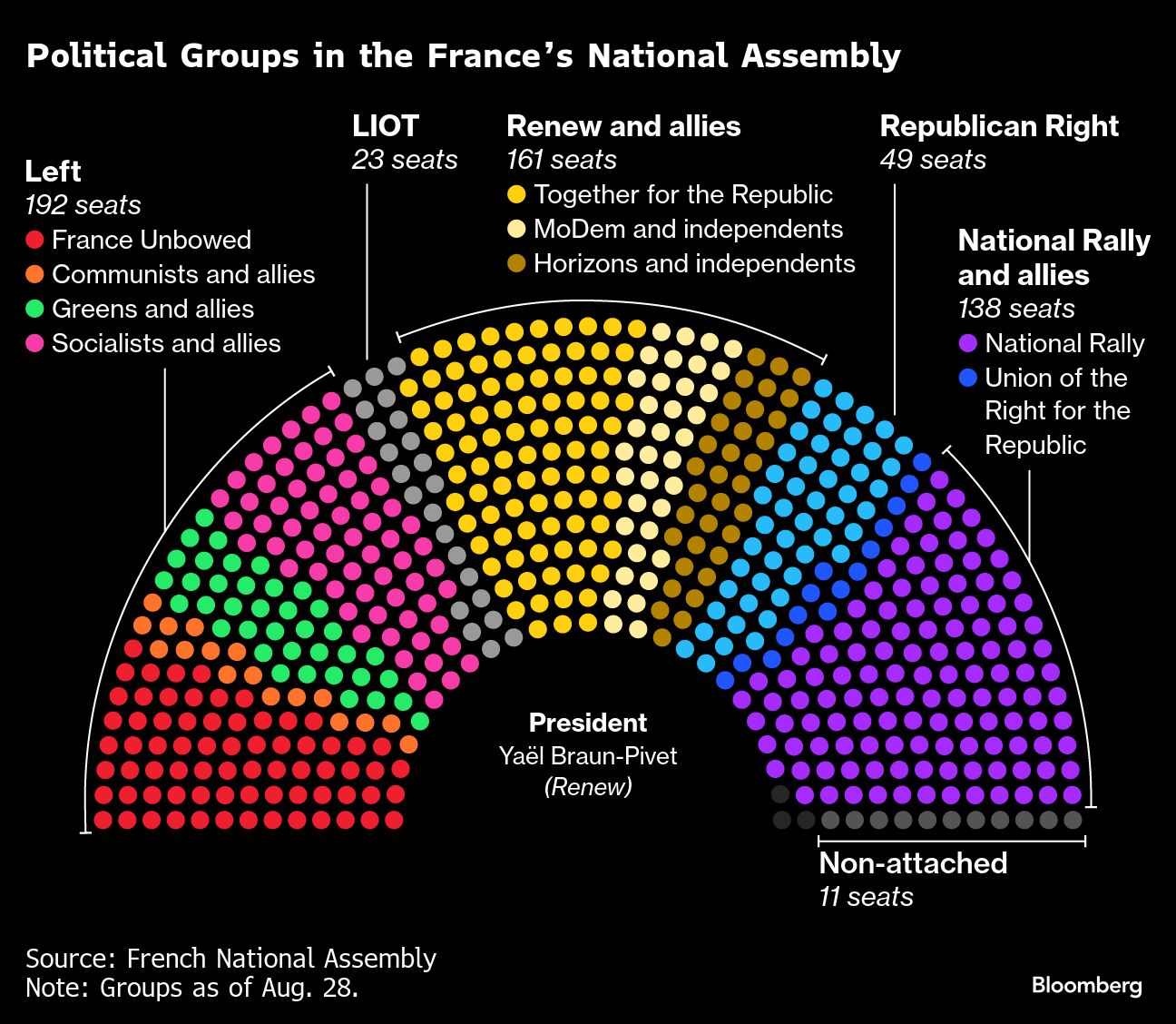The premier also needs to keep the support of what remains of a centrist bloc given the far left and Marine Le Pen’s far right have said they will seek to topple any cabinet that emerges to precipitate elections.