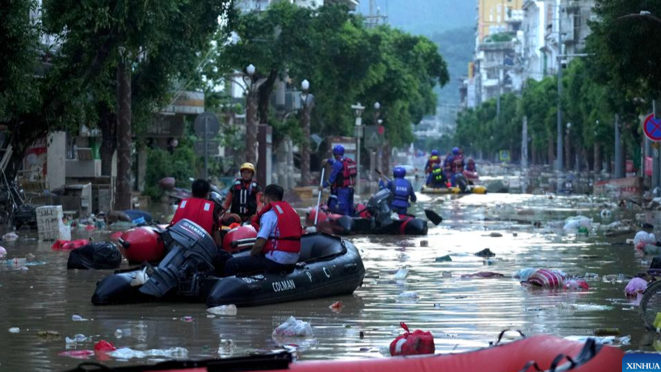 Rescuers evacuate residents in Rongjiang county, Southwest China's Guizhou province, June 28, 2025. (PHOTO / XINHUA)
