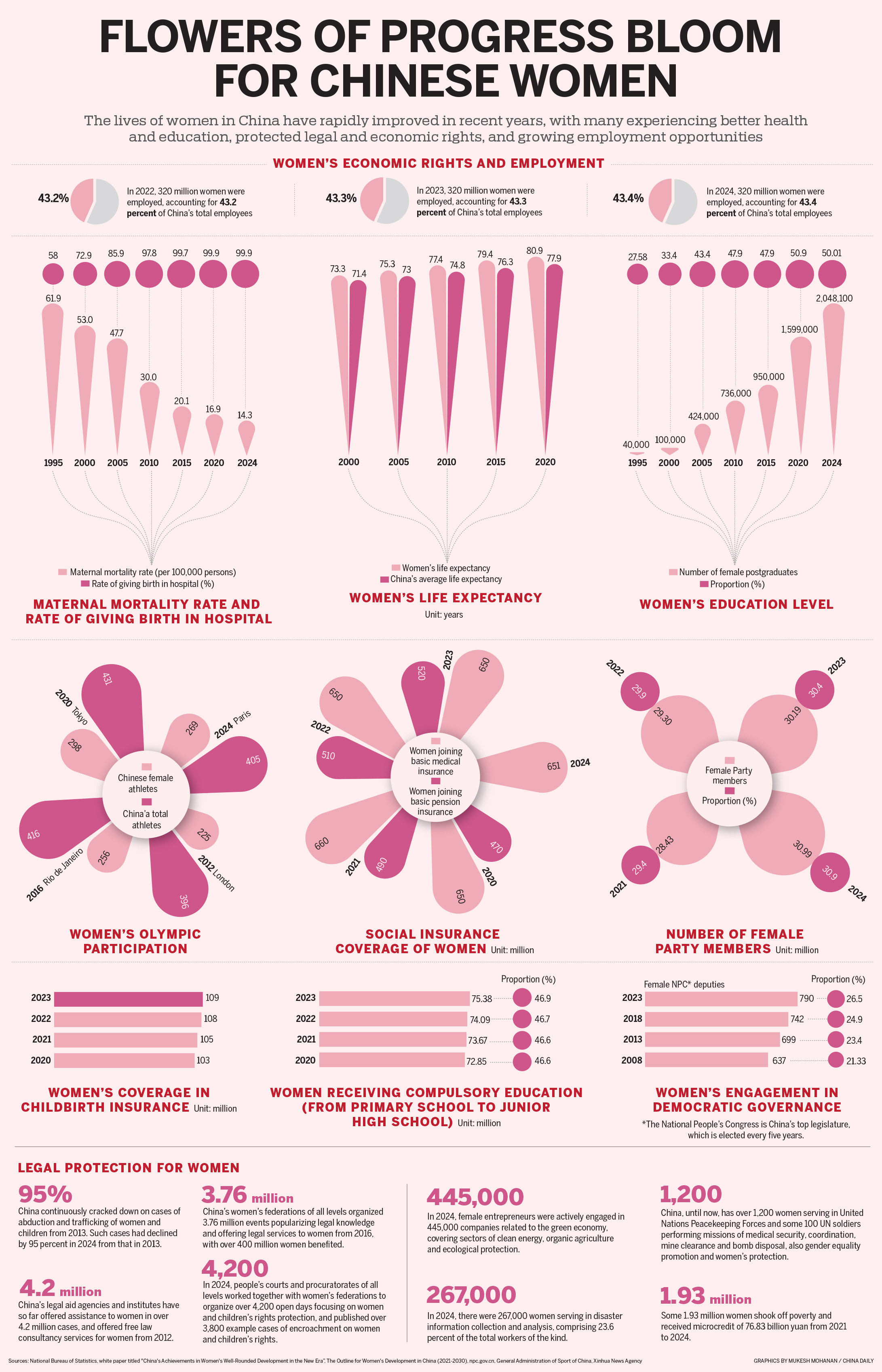 The lives of women in China have rapidly improved in recent years, with many experiencing better health and education, protected legal and economic rights, and growing employment opportunities