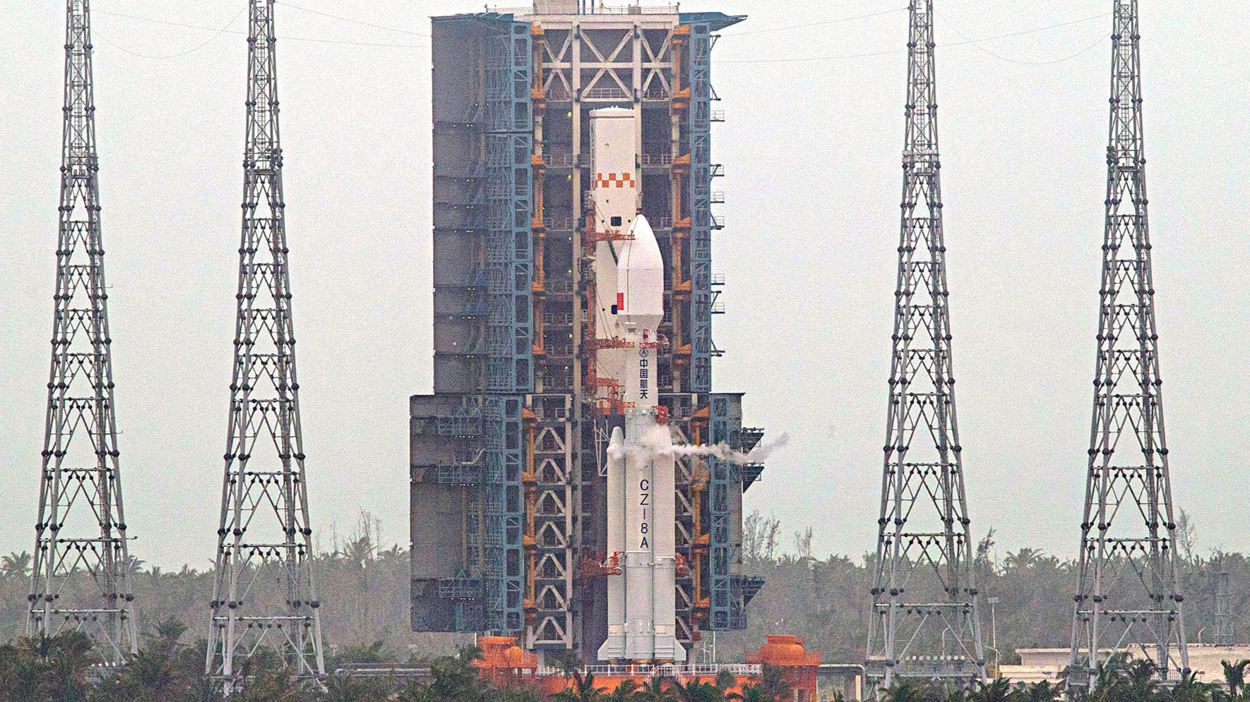 A Long March 8A carrier rocket awaits launch at the Wenchang Space Launch Site in Hainan province on Feb 11, 2025. The rocket blasted off at 5:30 pm, sending a group of satellites into their preset orbit. (YUAN CHEN / FOR CHINA DAILY)
