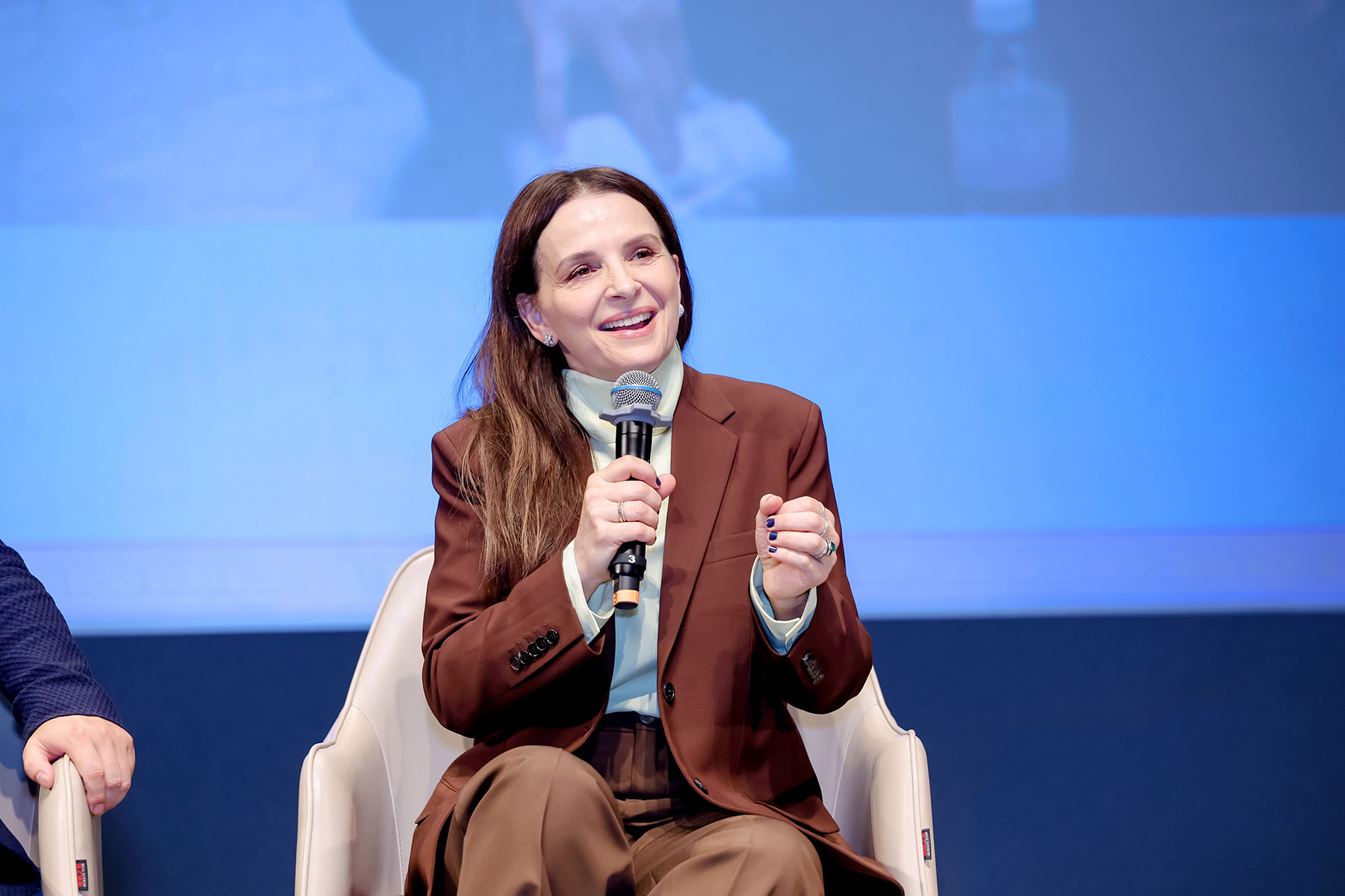 Juliette Binoche shares behind-the-scenes stories and exchanges insights with scholars at Peking University during the 2025 Beijing Culture Forum. (PROVIDED TO CHINA DAILY)