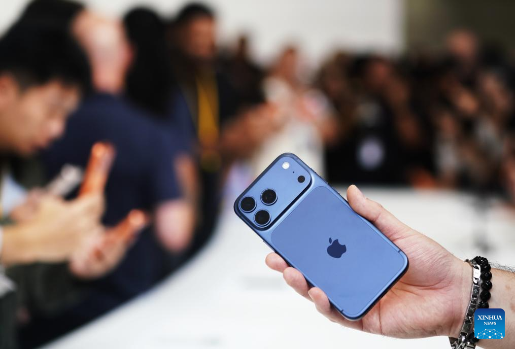A person holds a newly released Apple mobile phone after its launch in Cupertino, California, the United States, on Sept 9, 2025. (PHOTO / XINHUA)
