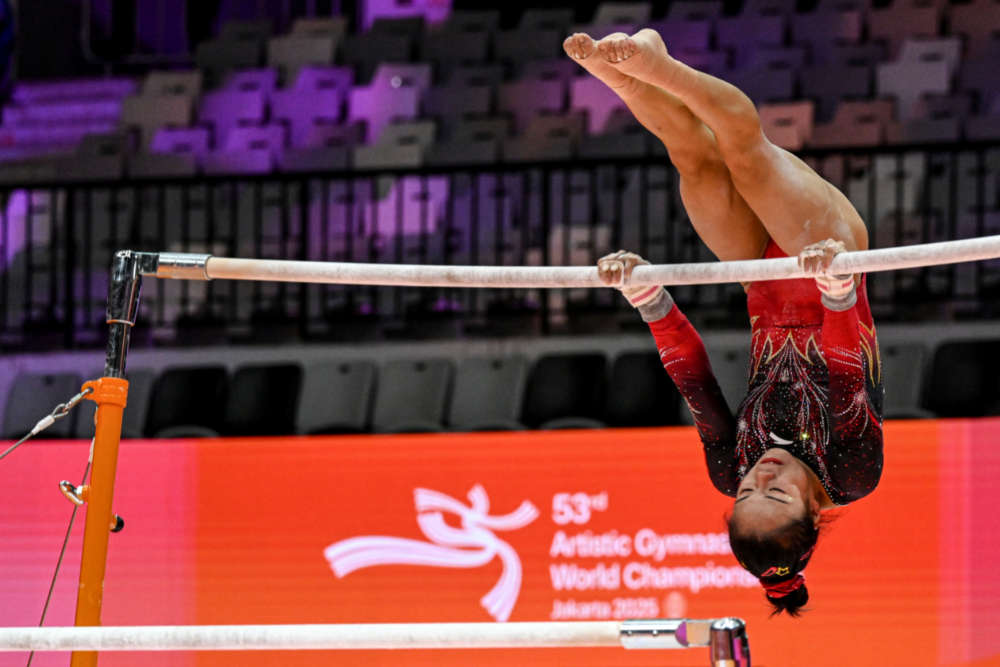 JAKARTA - The Chinese women's team experienced both good and difficult moments in the final qualification session of the 53rd Artistic Gymnastics World Championships held in Jakarta, Indonesia, on Tuesday.