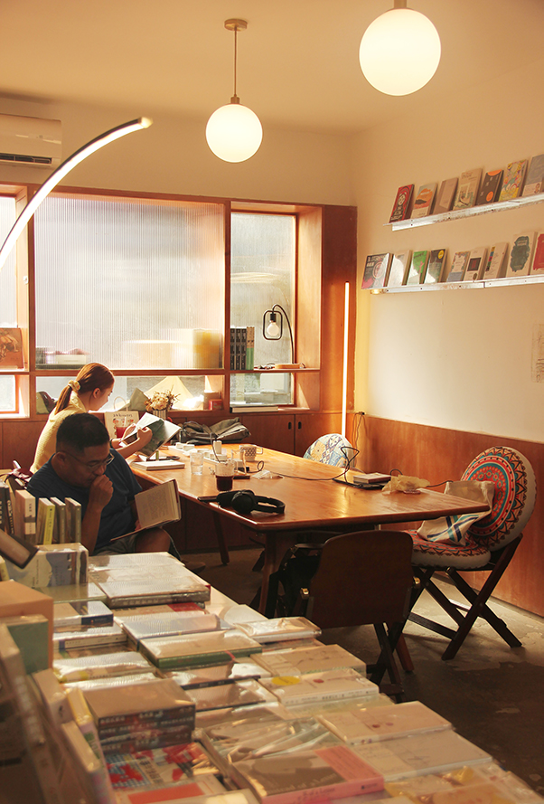 Readers enjoy an immersive reading moment at Possibly Books in April. (PROVIDED TO CHINA DAILY)