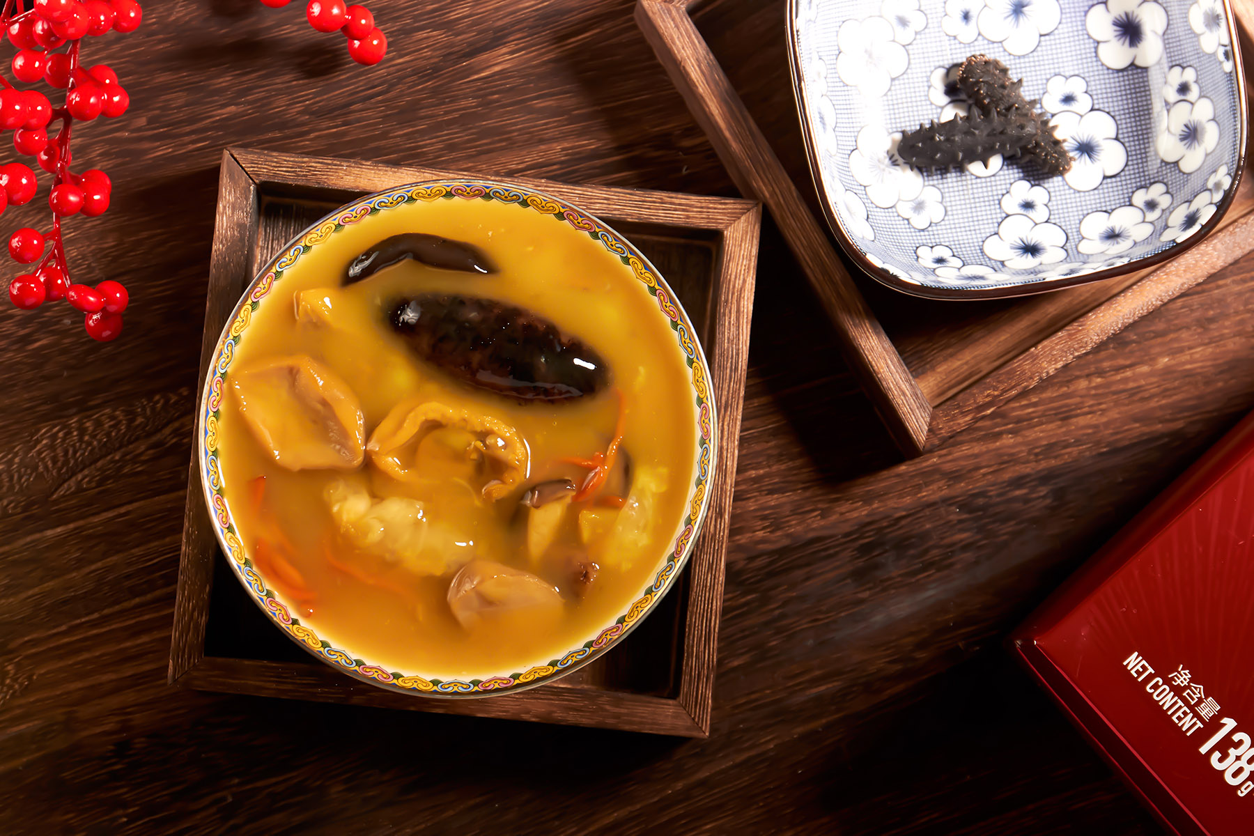 "When the essence of the bones dissolves completely into the broth, other non-bone premium ingredients, such as abalone with its springy texture, crisp sea cucumber, and sticky-soft fish maw, are added to keep their unique texture while harmonizing in the broth."