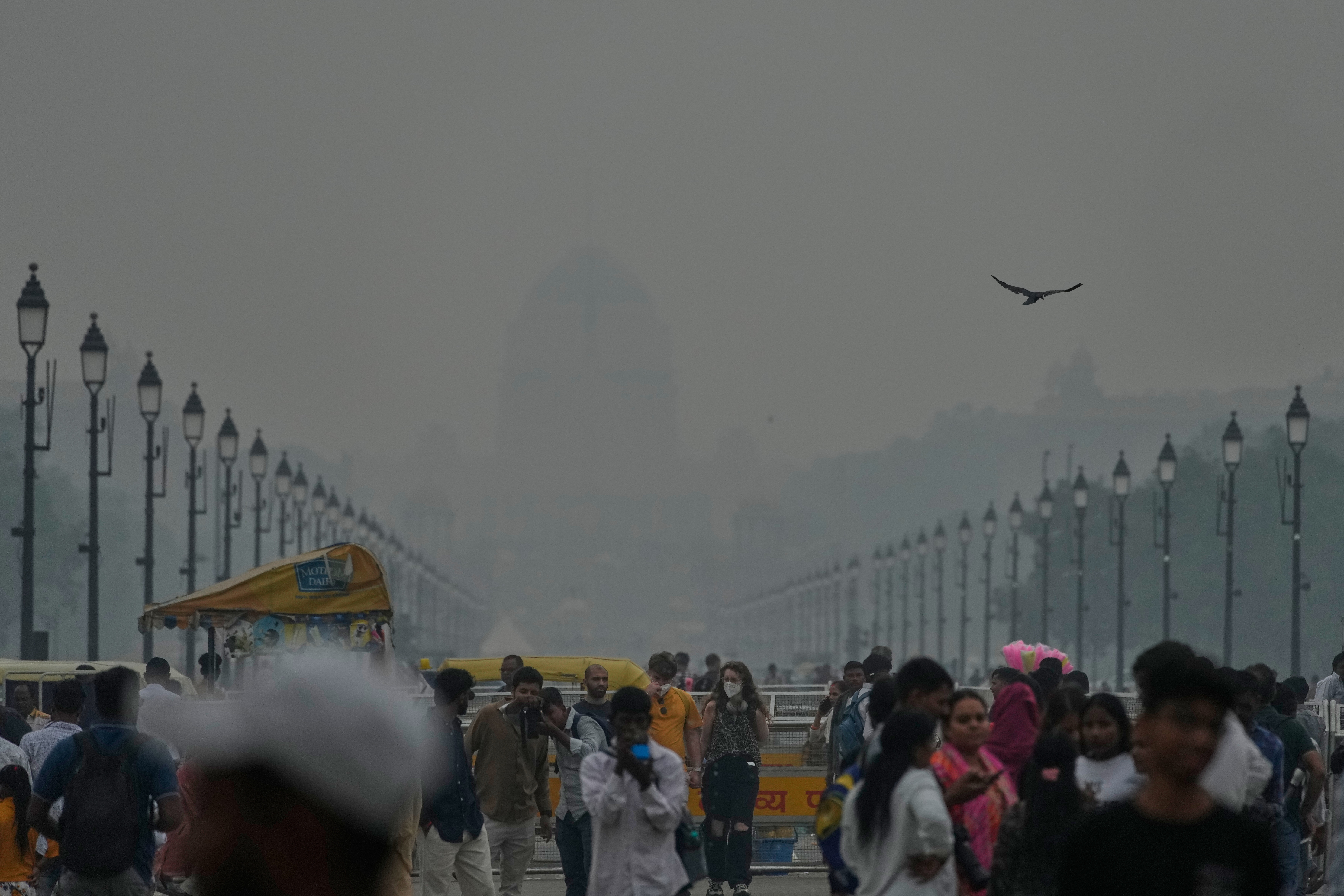 NEW DELHI -- Several areas in the Indian capital faced "Severe" air pollution levels on Sunday, even as the Air Quality Index (AQI) crossed the 400-mark and a dense smog enveloped the city.