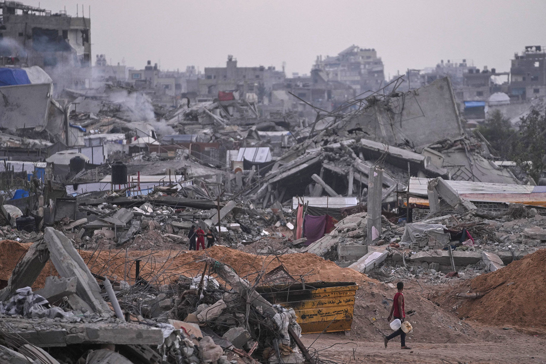Palestinians walk through the destruction caused by the Israeli air and ground offensive in Sheikh Radwan neighborhood in Gaza City, Nov. 10, 2025. (PHOTO / AP)