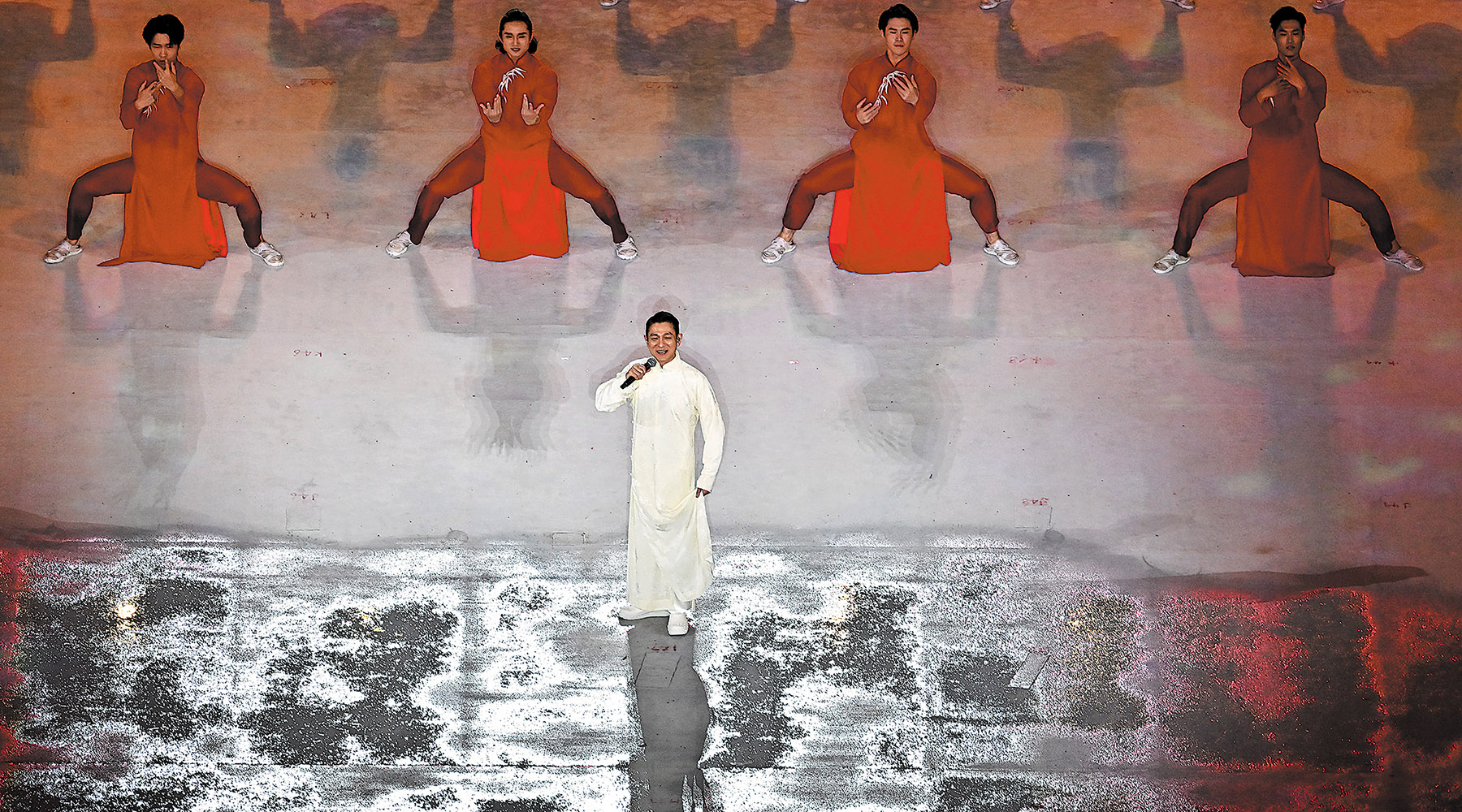 The production team presented the concept of “bringing the sea into the venue” on the 5,000 sq m stage. Technology enabled over 3,000 performers to create the visual effect of thousands. (FENG YONGBIN / CHINA DAILY)