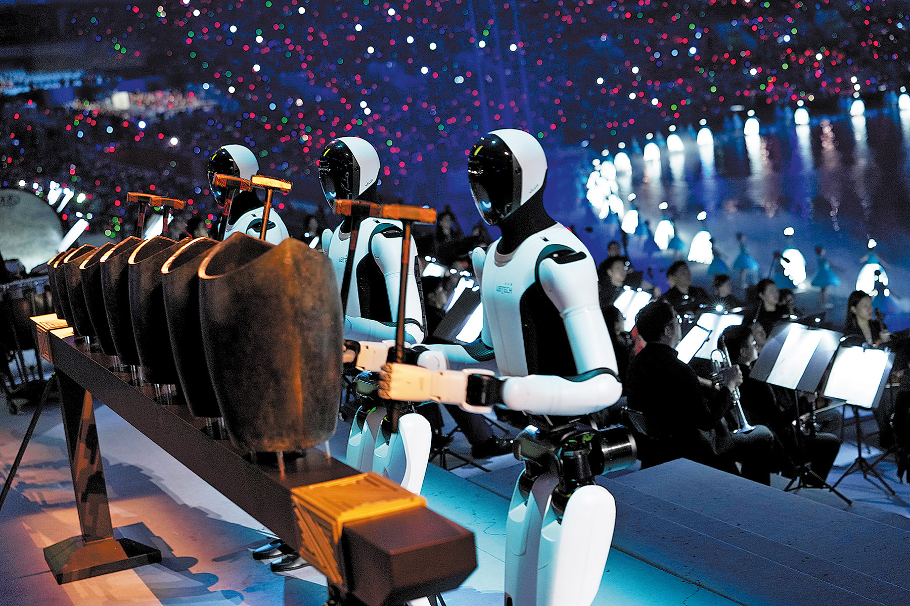 The robots, representing China’s new quality productive forces, presented a musical dialogue spanning more than 2,000 years to officially begin the 75-minute, culturally and technologically rich opening ceremony of the 15th National Games on the evening of Nov 9.