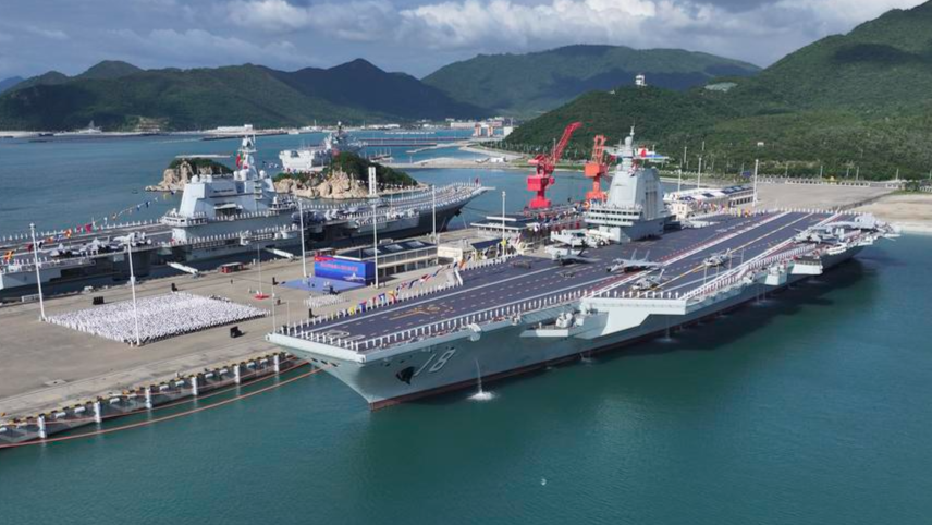 SANYA - The Chinese People's Liberation Army Navy (PLAN) on Tuesday said the aircraft carrier formation of the PLANS Fujian has conducted the carrier's first on-sea live-force training since its commissioning.