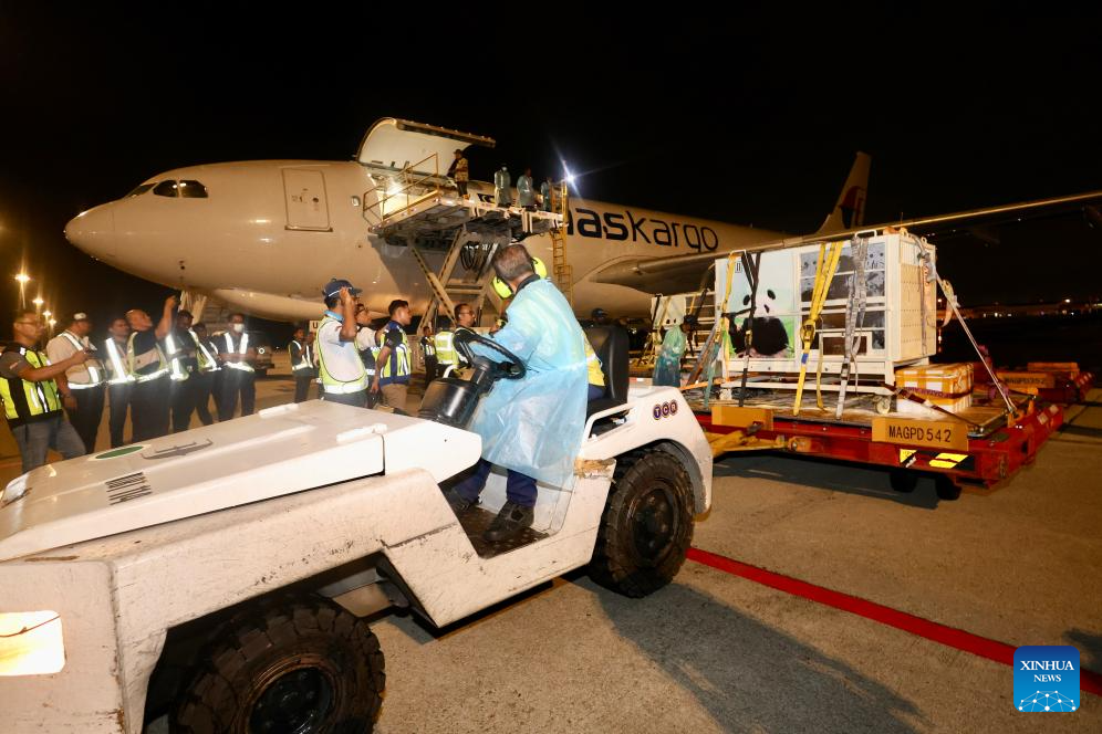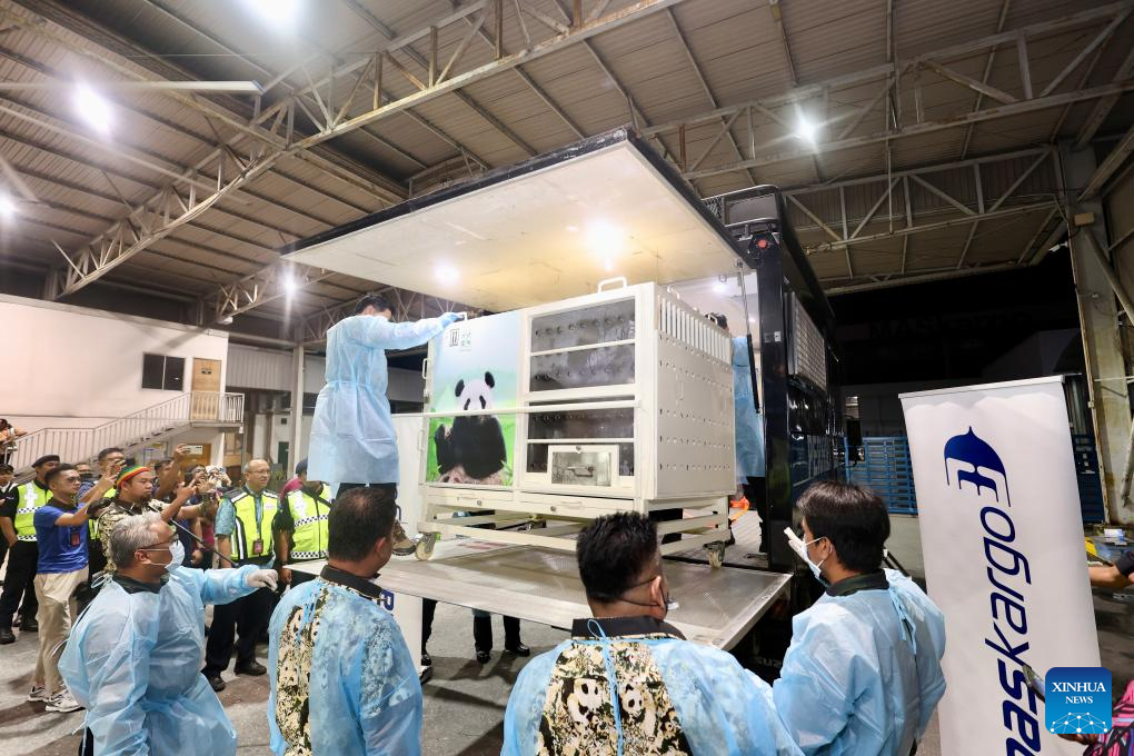 The pandas, named Chen Xing and Xiao Yue, took a flight from the Chengdu Shuangliu International Airport to Malaysia on Tuesday afternoon. They were selected for a new round of the panda conservation cooperation program between China and Malaysia after the two countries extended their conservation agreement in April.
