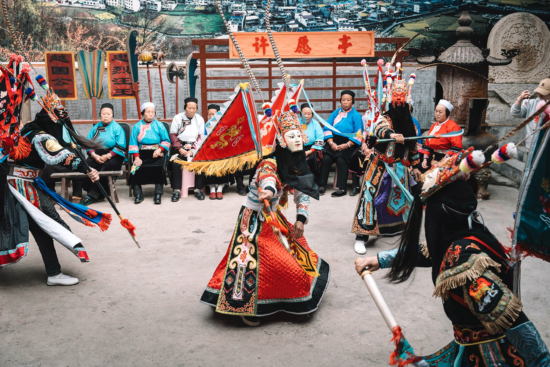 One of the most compelling attractions for visitors is Dixi Opera, a ritualized, martial dance-drama in which performers wear carved wooden masks representing historical heroes and generals. The masks range from fierce black-faced warriors with long beards to pale, noble visages with high brows. The opera is also a national-level intangible cultural heritage.
