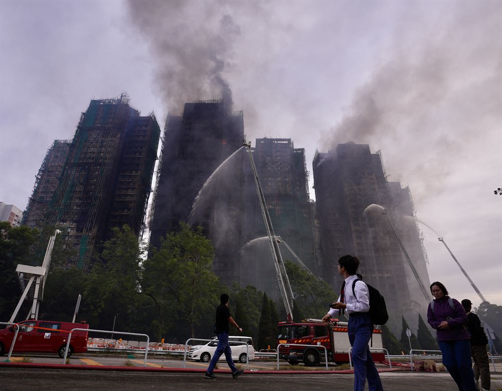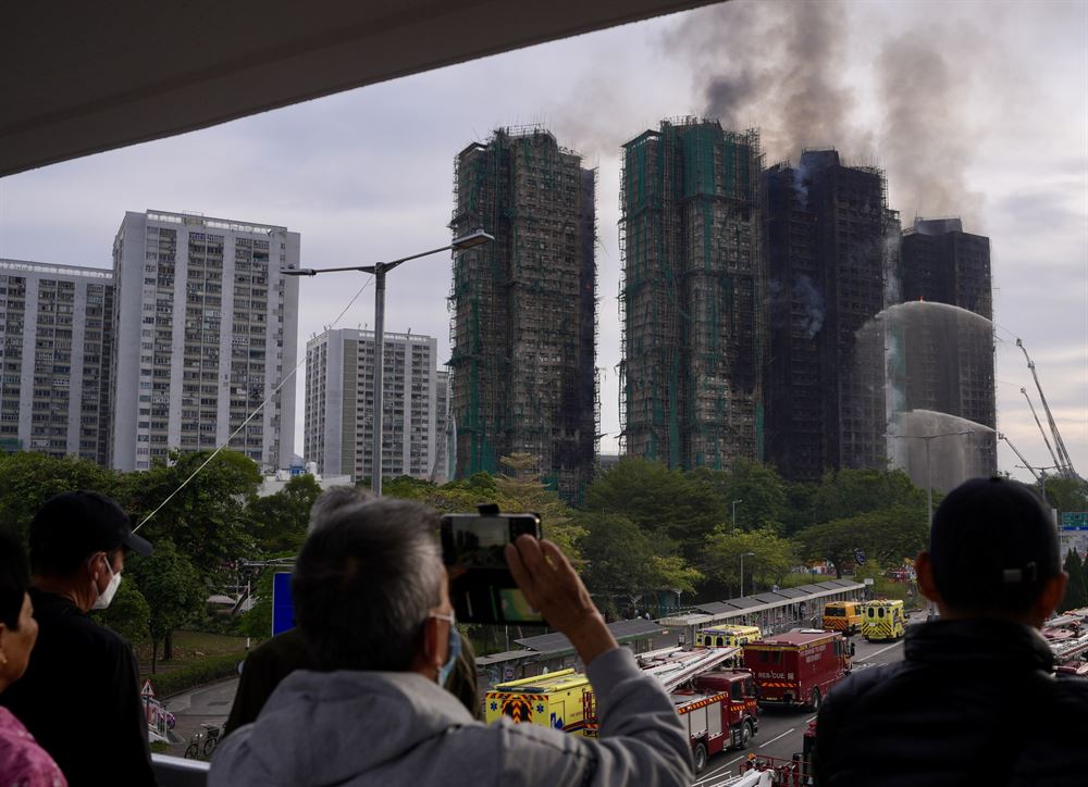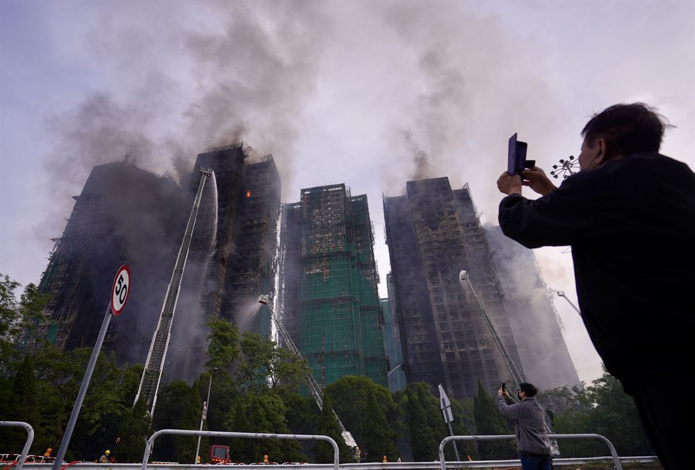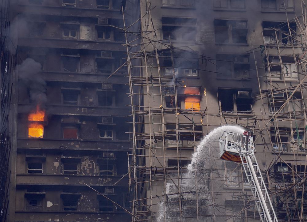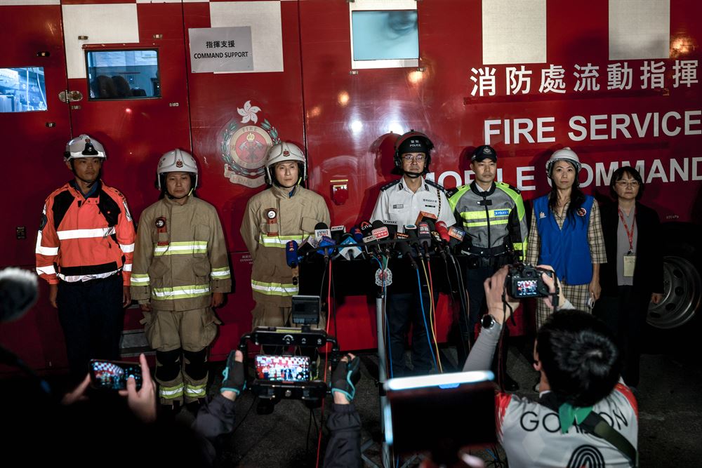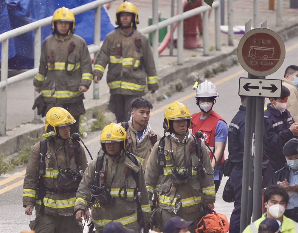Firefighters work to put off the fire at Wang Fuk Court, Tai Po, Hong Kong, in the early morning on Nov 27, 2025, as the blaze of the No 5 alarm, the most serious in the city, occur in the afternoon on Nov 26, leaving 44 people dead. (ADAM LAM / CHINA DAILY)Firefighters work to put off the fire at Wang Fuk Court, Tai Po, Hong Kong, on Nov 27, 2025, as the blaze of the No 5 alarm, the most serious in the city, occur in the afternoon on Nov 26, leaving 44 people dead. (ADAM LAM / CHINA DAILY)Workers give a elderly resident a jacket in Tai Po, Hong Kong, on Nov 27, 2025, as the blaze of the No 5 alarm, the most serious in the city, is still buring at nearby Wang Fuk Court, leaving 44 people dead. (ADAM LAM / CHINA DAILY)A woman cries while showing a picture of her daughter who is missing in a fire, in Tai Po, Hong Kong, on Nov 27, 2025, as the blaze of the No 5 alarm, the most serious in the city, is still buring at nearby Wang Fuk Court, leaving 44 people dead. (ADAM LAM / CHINA DAILY)Residents take their personal belongings to a temporary shelter at CCC Fung Leung Kit Memorial Secondary School in Tai Po, Hong Kong, on Nov 27, 2025, as the blaze of the No 5 alarm, the most serious in the city, is still buring at nearby Wang Fuk Court, leaving 44 people dead. (ADAM LAM / CHINA DAILY)Firefighters work to put off the fire at Wang Fuk Court, Tai Po, Hong Kong, on Nov 26, 2025, as the blaze of the No 5 alarm, the most serious in the city, occur in the afternoon. (ANDY CHONG / CHINA DAILY)The Fire Services Department holds a press conference about the fire at Wang Fuk Court, Tai Po, Hong Kong, on Nov 26, 2025, as the blaze of the No 5 alarm, the most serious in the city, occur in the afternoon. (ANDY CHONG / CHINA DAILY)Residents are evacuated as fire is burning at Wang Fuk Court, Tai Po, Hong Kong, on Nov 26, 2025. The blaze of the No 5 alarm, the most serious in the city, occur in the afternoon on Nov 26. (ANDY CHONG / CHINA DAILY)Residents are evacuated to a nearby temporary shelter as fire is burning at Wang Fuk Court, Tai Po, Hong Kong, on Nov 26, 2025. The blaze of the No 5 alarm, the most serious in the city, occur in the afternoon on Nov 26. (ANDY CHONG / CHINA DAILY)