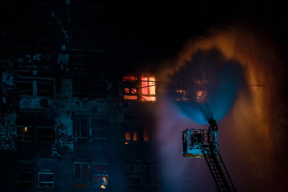 Firefighters have been working to put off the fire, which broke out at 2:51 pm on Wednesday and spread rapidly across seven of the estate's eight towers.