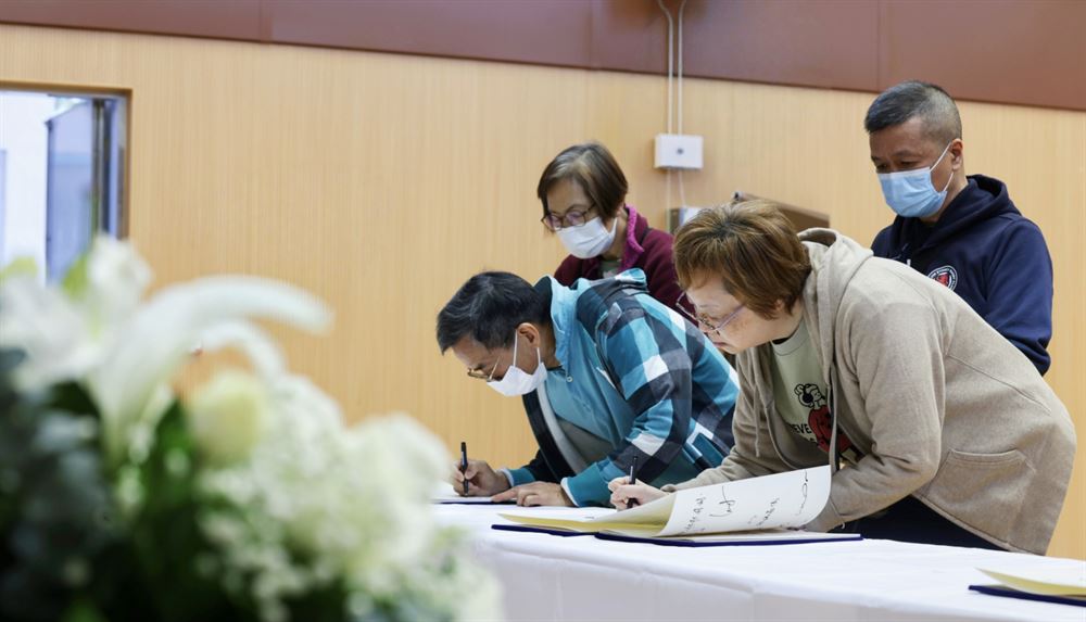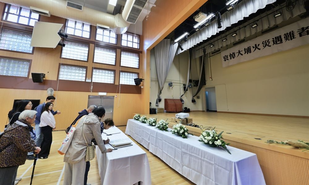 The national flag (right) and the flag of the Hong Kong Special Administrative Region fly at half-mast at the Central Government Offices on Nov 29, 2025, to mourn the victims of the fire at Tai Po's Wang Fuk Court. (PARKER ZHENG / CHINA DAILY).The national flag (front) and the flag of the Hong Kong Special Administrative Region fly at half-mast at Golden Bauhinia Square in Wan Chai on Nov 29, 2025, to mourn the victims of the fire at Tai Po district's Wang Fuk Court. (PARKER ZHENG / CHINA DAILY)A resident lays flowers and pays tribute to the victims of the deadly Wang Fuk Court fire, near the site of the fire in Hong Kong's Tai Po distrcit, Nov 28, 2025. (PARKER ZHENG / CHINA DAILY)Residents sign condolence books to pay tribute to the victims of the fire at Tai Po's Wang Fuk Court, at the Fu Heng Neighbourhood Community Centre in Hong Kong on Nov 29, 2025. (PARKER ZHENG / CHINA DAILY)