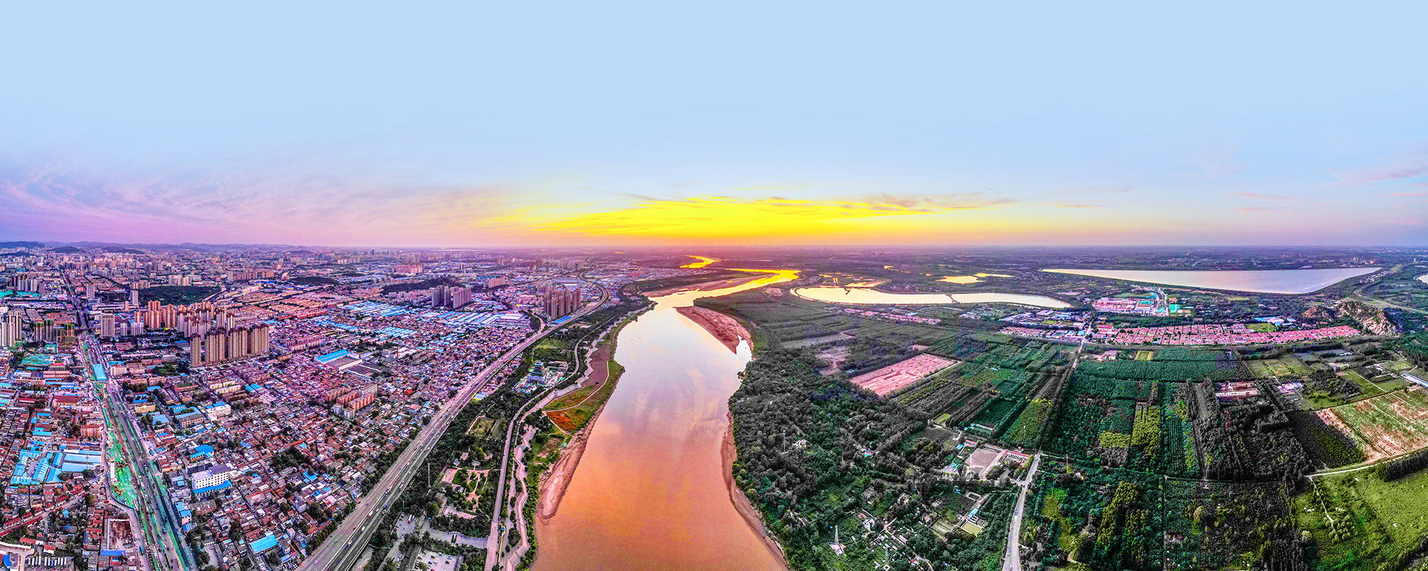 The vibrant sunset casts a dazzling array of colors over the Yellow River, which flows as a vital lifeline through the heartland of China. (PROVIDED TO CHINA DAILY)