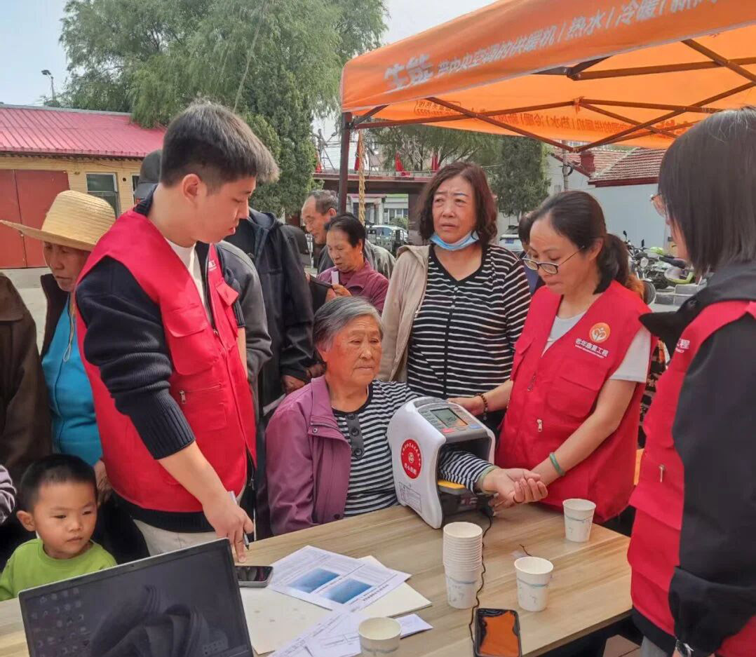 Chen (second from right) and her colleagues provide free health checks to seniors at a village in Hebei province. (PROVIDED TO CHINA DAILY)