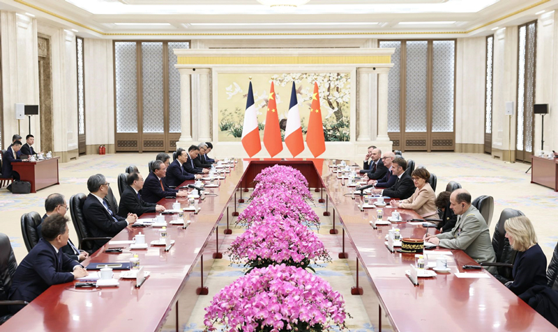 Zhao Leji, chairman of the National People's Congress (NPC) Standing Committee, met with French President Emmanuel Macron in Beijing on Thursday.