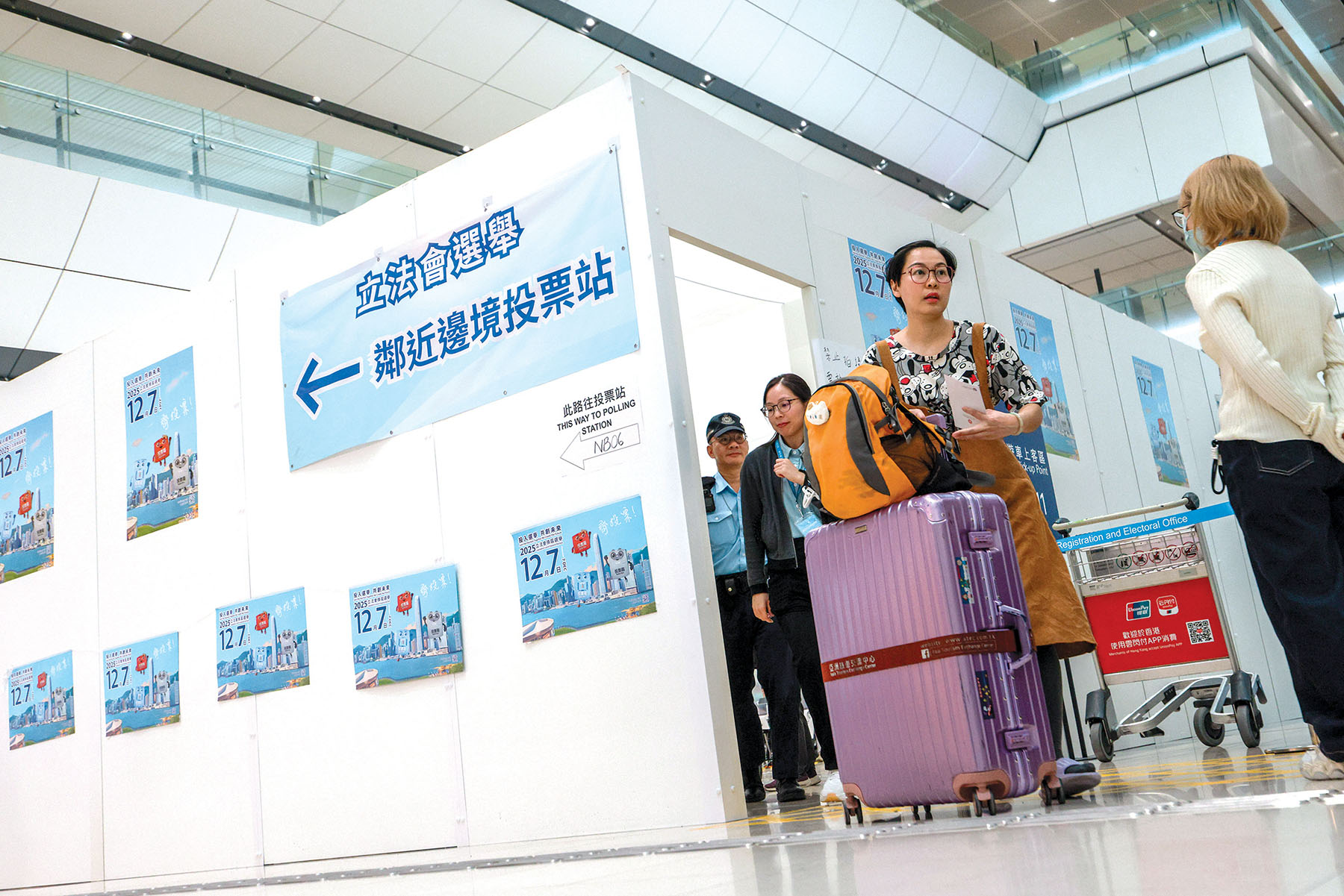 Voting began at 7:30 am. Shortly after 8 am, a steady stream of voters had begun arriving at various polling stations, including Law Ting Pong Secondary School and Hong Kong Teachers’ Association Lee Heng Kwei Secondary School in Tai Po, a suburban district in the New Territories. The stations served as repositioned polling centers following the fatal blaze on Nov 26. They were among some 600 ordinary polling stations operated across the city, including six near-border checkpoints for travelers.