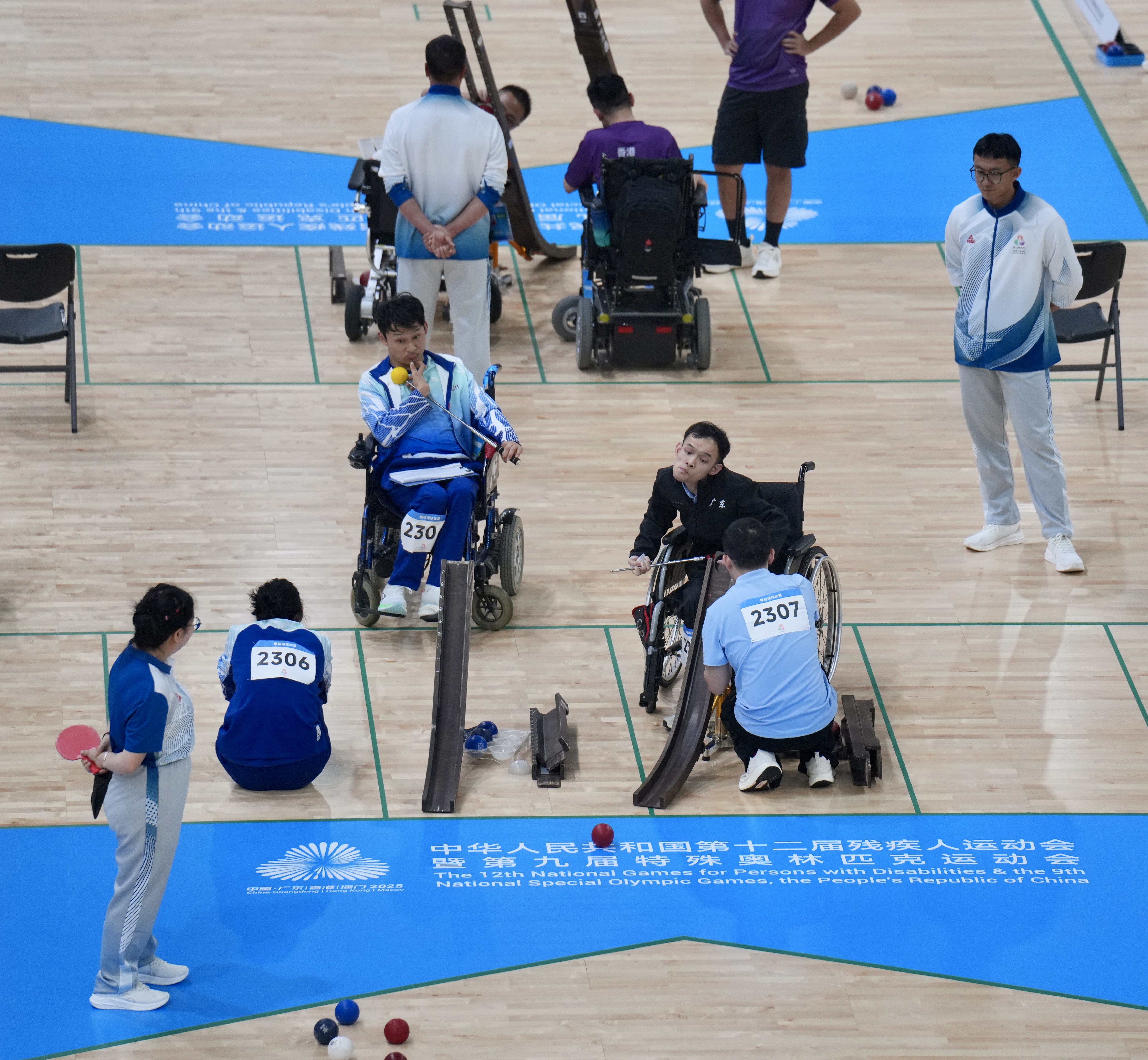 HONG KONG - The boccia competition of the 12th National Games for Persons with Disabilities and the 9th National Special Olympic Games on Wednesday entered its second day at Kai Tak Arena in the Hong Kong Special Administrative Region.