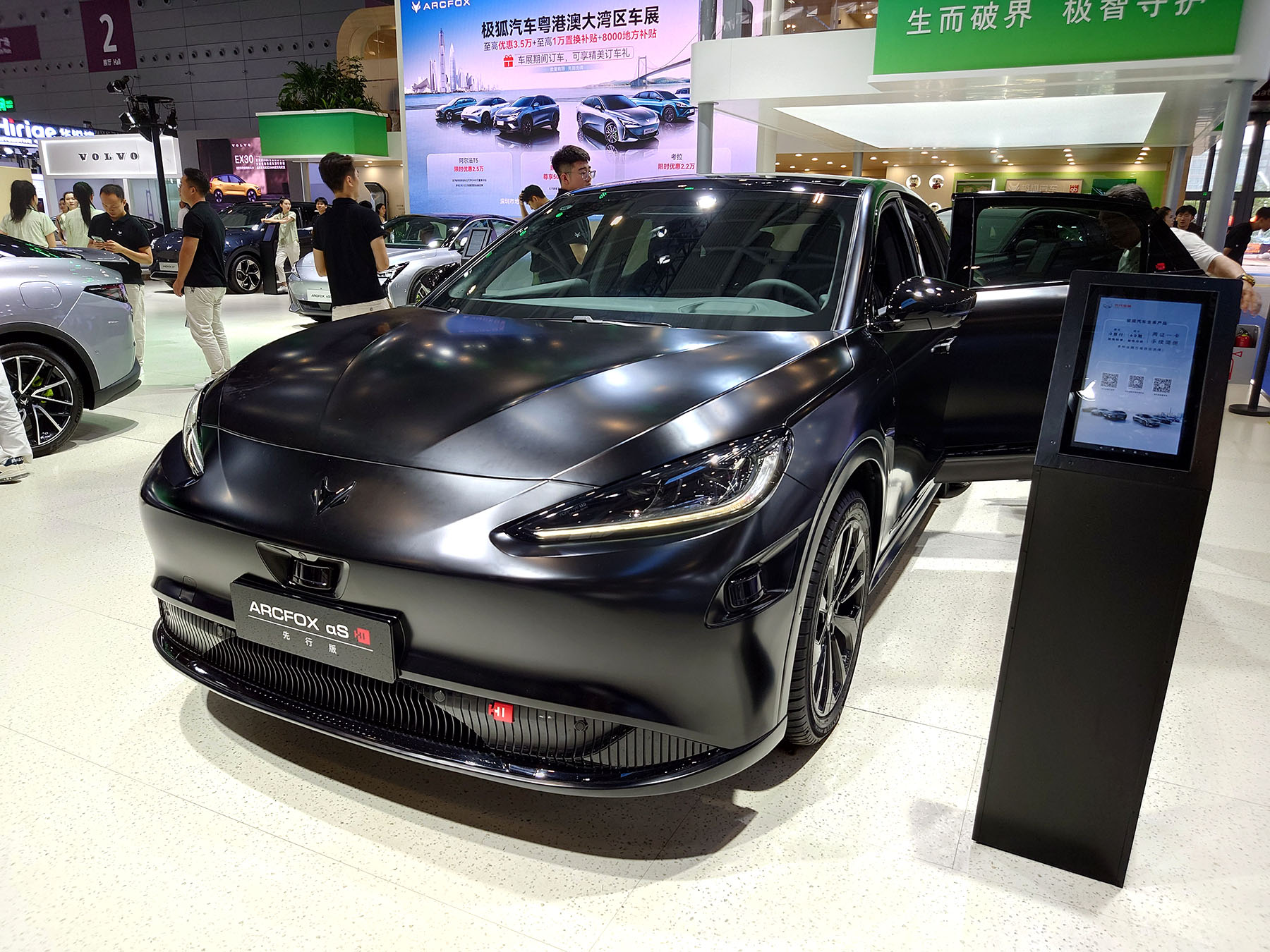 BAIC Arcfox showcases the Alpha S sedan at the Guangdong-Hong Kong-Macao Greater Bay Area International Auto Show in Shenzhen in July 2024. (LIANG XIASHUN / FOR CHINA DAILY)