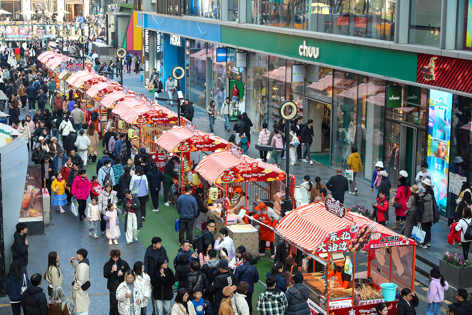 A "double festival heartwarming season" event kicks off on Wujiang Road in Shanghai on Dec 28, 2025, offering tourists an integrated experience of travel consumption and local specialty foods. (PROVIDED TO CHINA DAILY)