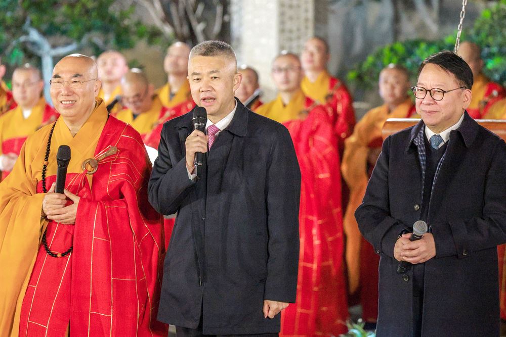 Meanwhile, at Chi Lin Nunnery in Kowloon's Diamond Hill, a bell striking ceremony was launched to wish Hong Kong a prosperous and harmonious year. Deputy Director of the Liaison Office of the Central People’s Government in the Hong Kong Special Administrative Region Sun Shangwu, Chief Secretary for Administration of the HKSAR government Eric Chan Kwok-ki attend the event with other officials and guests.